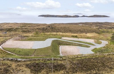 A serviced house site with full planning consent for a three bedroom house and garage, with stunning views to the Summer Isles.