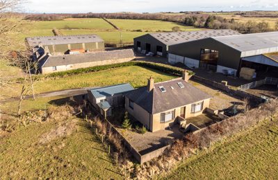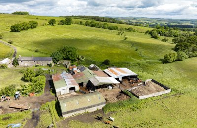 Detached farmhouse, range of modern and traditional farm buildings and around 61.63 hectares (152.28 acres) of farmland. For Sale as a Whole.