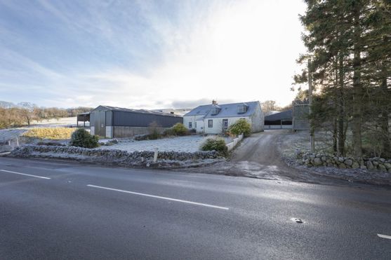 The farmhouse currently has accommodation over one and half storeys, including a sitting room with open fire, living room, four bedrooms, and kitchen with walk-in larder. There is also a family bathroom, separate WC and an additional staircase leads to the former maid’s quarters.