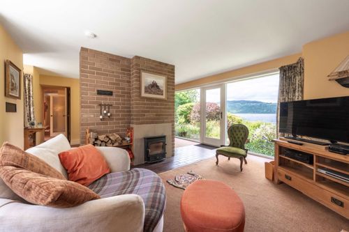 The open plan sitting room/dining room on the ground floor benefits form a cosy wood burning stove, whilst floor to ceiling glazing allows an influx of natural light and extends the sense of space into the garden whilst framing the views over the loch.