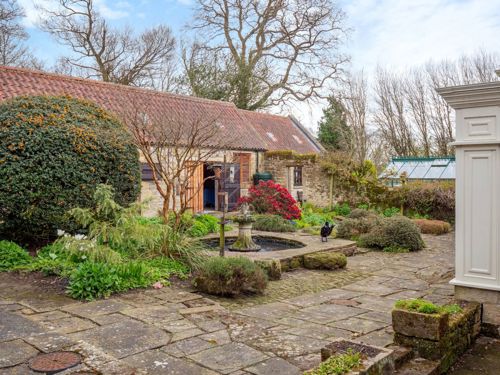 For those keen to grow their own, the vegetable garden includes a series of raised beds together with a modern glazed greenhouse and garden store.