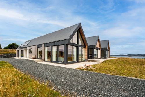 - Na Tri Stuadhan, near Poolewe, Wester Ross, Offers Over £675,000 - Na Tri Stuadhan was completed in 2020 and has beautifully appointed, semi-open plan accommodation designed to take advantage of the stunning views over Loch Ewe, the Isle of Ewe and the distant mountains. The property is highly energy efficient with solar panels, high levels of insulation and underfloor heating. The interior has high quality finishes throughout including solid oak internal doors, engineered oak flooring and Ashley Ann bathroom and kitchen fittings.