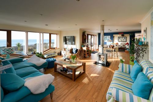 In keeping with its location, the property presents coastal themed décor throughout whilst the central wood burning stove creates a cosy open plan living space, where the reception rooms including the snug, dining area, kitchen and sitting room combine seamlessly.