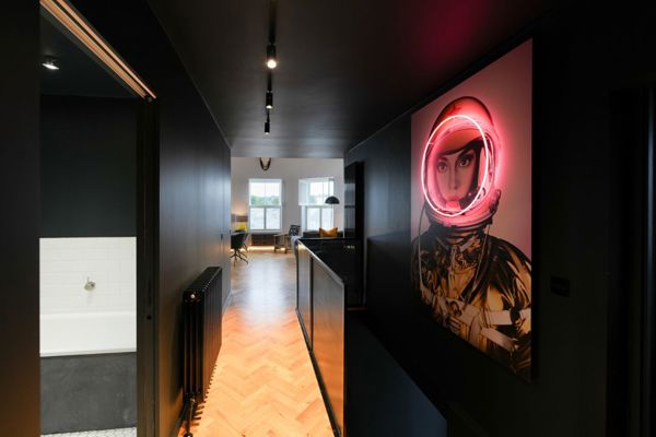Elegant oak parquet flooring, bespoke shelving and LED lighting add both character and a modern flair.