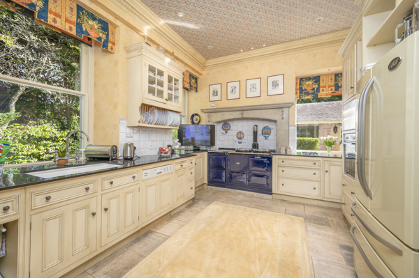 Clipped box hedging edges paths through the grounds, while to one side of the house is a tennis lawn and to the rear is an exquisite walled garden and small orchard. Adjacent to the south side of the house is a flagstone terrace, flanked by two beautiful magnolia trees and with an automatic awning and French doors to the house.