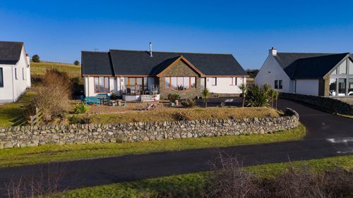 Millhaven is a bright and spacious south facing bungalow situated just a stone’s throw from the coast, with panoramic views across Stairhaven Bay to Luce Bay and the Mull of Galloway beyond. At the heart of this home are four rooms which combine seamlessly to form one large space for relaxing, entertaining, cooking and dining. The snug, dining area and sitting room have wall to wall windows, framing the views, and French doors from the dining area open to the elevated patio. The snug is a flexible space and could be utilised as an office or playroom, depending on the needs of the new owners. All four bedrooms are accessed from the main hall - the master bedroom is flooded with natural light and has an en suite shower room as well as a walk in wardrobe. The low maintenance garden has paved pathways and a number of raised beds for vegetables or herbs. There is also a greenhouse, a timber shed and a log store. The highlight of the garden is the raised patio, accessed from the dining area, which offers a stunning setting to dine alfresco during the day or as the sun sets over the Bay.