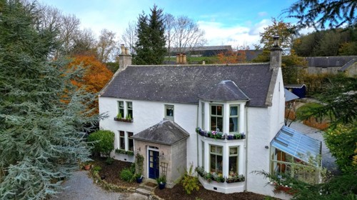 Thornyhill is an attractive five bedroom family home surrounded by mature garden grounds. This stone-built property offers spacious and well-proportioned accommodation, combining period features with modern fixtures and fittings. Reception rooms are welcoming and, from the conservatory, the gardens can be fully enjoyed from every angle and reached via French doors. Versatile accommodation can be found upstairs with tastefully decorated bedrooms, an en-suite shower room and a family bathroom. The grounds reach around 7 acres and a range of outbuildings, including two large stone-built steadings, provide scope for development. Thornyhill offers beautiful countryside living whilst also having easy access to surrounding villages and the A90.