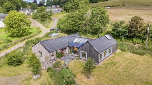 Pitlyal Byre lies in the scenic county of Angus four miles to the south of Newtyle and approximately nine miles to the north-east of Dundee. Pitlyal Byre is an outstanding country property with separate annexe set in over five acres. The main house is of mixed construction comprising traditional solid stone and a modern timber frame with Larch cladding. Internally the house offers modern contemporary accommodation along with ecologically sympathetic and energy efficient living. The impressive kitchen/dining room/ sitting room has a full height cathedral ceiling, and the multiple large windows offer an outstanding aspect over the adjacent meadow ground and beyond to Round Loch used by a local fishing club. A separate studio annexe provides additional accommodation and a workshop with glazed doors opening out to a lovely terrace.