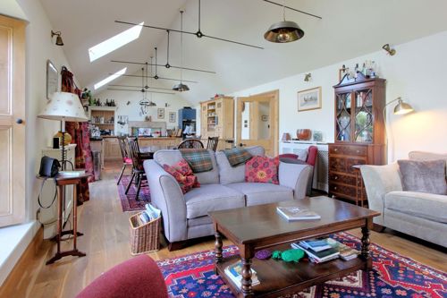 The house is heated using a biomass (wood pellet) boiler and has an array of solar PV and solar thermal panels which improve the property’s energy efficiency.