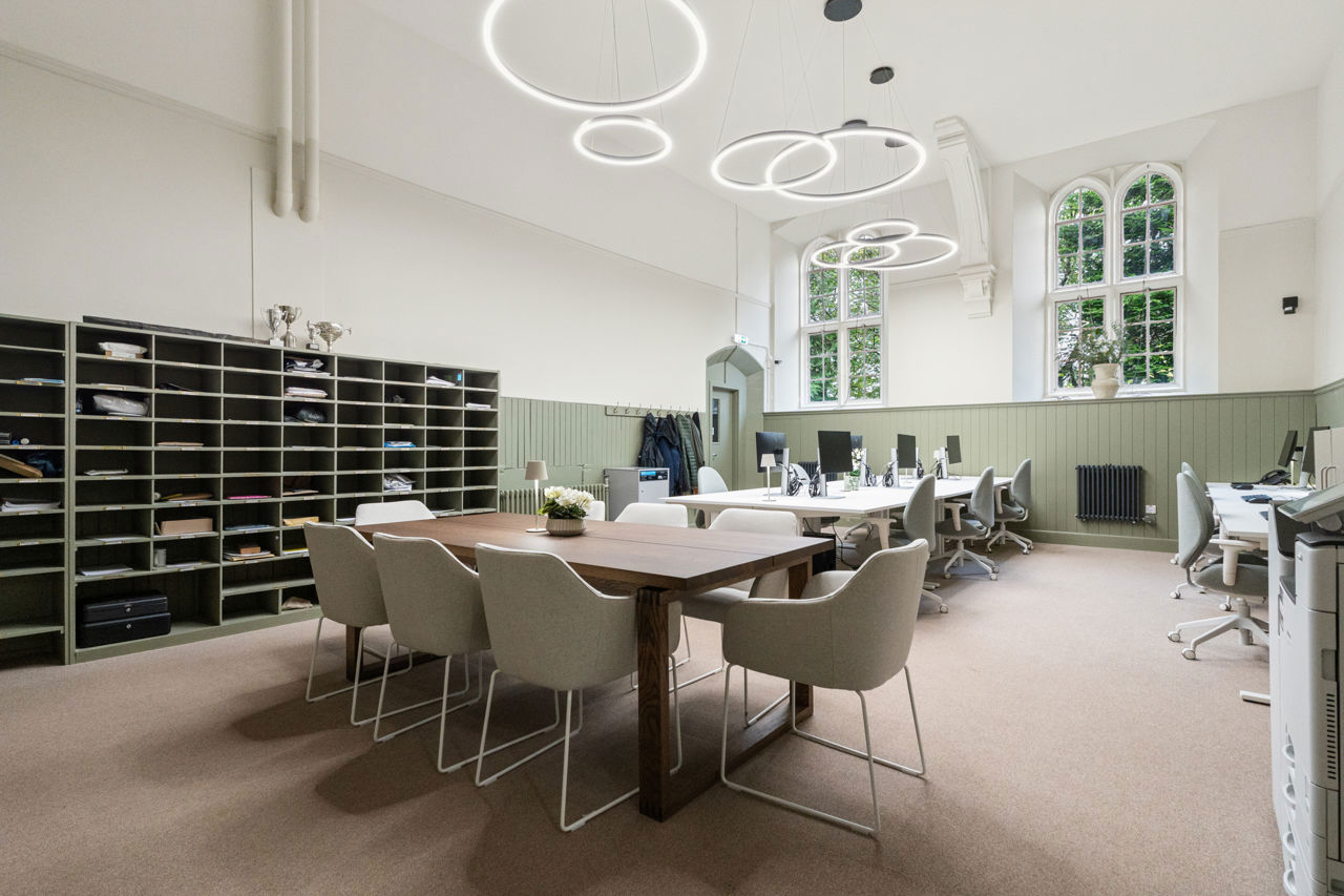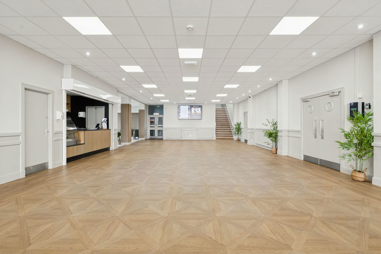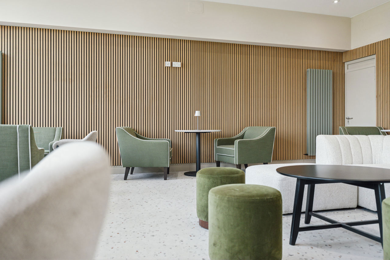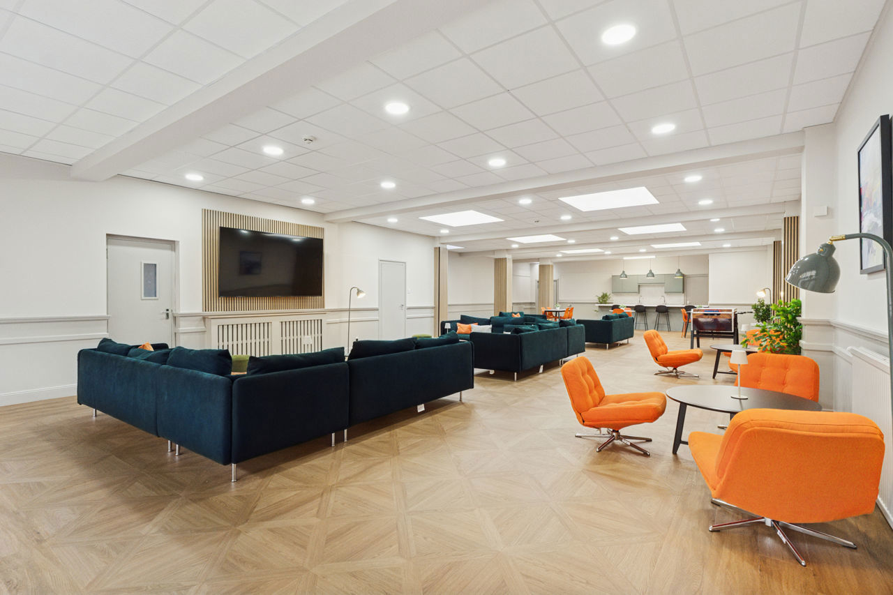 Works involved the full strip-out and reconfiguration of internal spaces, upgraded finishes throughout, installation of new kitchen and café facilities, remodelling of ceilings, and provision of new bespoke and loose furniture. Architectural details were introduced to complement the historic context while delivering a modern, welcoming environment for daily use.