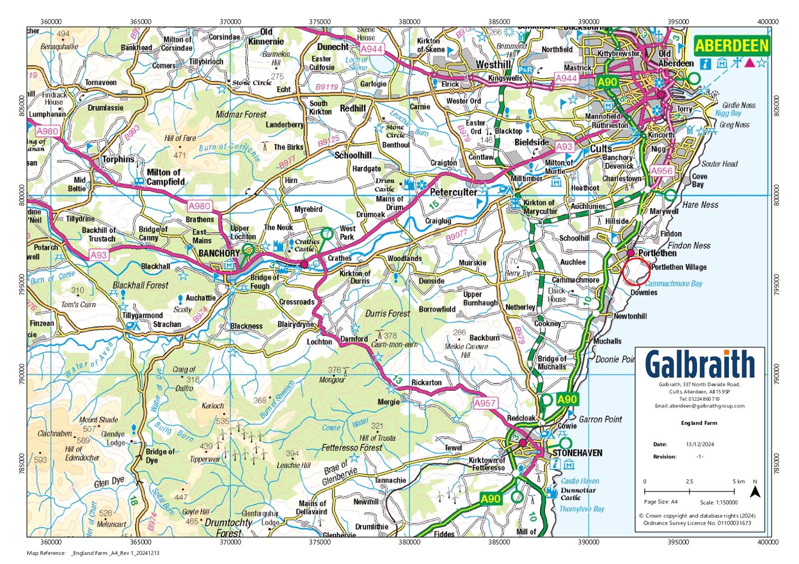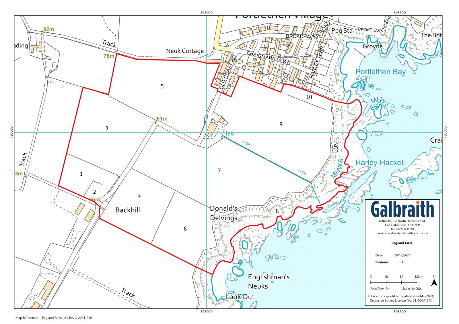 DESCRIPTIONEngland Farm extends from the shores North Sea to approximately 50 metres above sea level and extends to 63.60 acres (25.74 hectares). excluding roads, yards and buildings and benefits from convenient access from the public road network. There is an internal track referred to as the Old Portlethan Road which provides access to all fields is a registered core path.The farmhouse is centrally located adjacent to the farm buildings. The farmhouse extends to 141m2 internally and is of stone construction under a slate roof. The accommodation is over two floors as follows:Ground Floor: Kitchen, Sitting Room, Dining Room, 2 x Bathrooms.First Floor: 3 BedroomsThe traditional steading includes a U-shaped buildings and in-fill court. A serviceable dutch barn lies adjacent. The farmhouse and buildings are in need of extensive refurbishment.The land extends to 63.60 acres (25.74 hectares) of farmland, excluding roads, yards and buildings. The land is currently in grass and is in good heart with the farm being used for livestock grazing. According to the James Hutton Institute the land is classified as Grade 3(2), being capable of growing high yields of a wide variety of crops. The land lends itself to a variety of uses including agriculture, equestrian or amenity. The land includes approximately 735m of mixed coastline including rocky shore and cliffs, being of Grade 6(2) according to the James Hutton Institute.