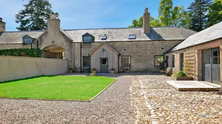 The Cottage House dates back to 1851 andas a whole building with the adjacent coach house was originally designed by the prominent local architect James Matthews. With a quiet, countryside location and a courtyard style setting, this is a rare opportunity to acquire a traditional home, full of character, yet newly refurbished by the present owners. The property extends to over 260sqm across two levels which has since been extended into the adjoining steading to create additional spacious accommodation. This property would make a wonderful family home amongst the beautiful countryside, or equally work well for multi-generational living or even a holiday let business with the necessary permission. With a short 15-minute drive to the Cairngorms National Park and a short walk to the banks of the River Dee, the location is idyllic for those seeking the beautiful Scottish scenery and the outdoor lifestyle.Enter the main front door of the former cottage into the reception hall which gives access to the lounge and dining kitchen. The kitchen is of farmhouse style with space for dining and an adjacent larder and the lounge is very spacious with a wood burning stove. The lounge leads through to the dining room, which is a versatile space and takes you to the inner hall and a bathroom. There are three good sized double bedrooms on the upper floor level, together with a shower room and separate bathroom with shower cubicle. The inner hall leads through to the former steading part of the home where there is a further lounge with doors opening out to the courtyard, kitchen which would also make an ideal utility room and two further bedrooms. There is also a showroom and study room, which could be a further bedroom if required. The entire property creates an exceptionally spacious family home, whilst the former steading wing could make ideal separate family accommodation and has holiday let potential.Ground Floor:Entrance Hall - 1.25m x 2.35m approx.Dining Kitchen - 4.74m x 3.21m approx.Larder - 2.27m x 1.37m approx.Lounge - 4.76m x 3.93m approx.Dining/Family Room - 4.74m x 3.56m approx.Rear Hallway: -2.22m x 2.83m approx.Family Bathroom – 2.37m x 2.48m approx.Steading Hall - 6.26m x 0.99m approx.Kitchen / Utility room: - 2.55m x 3.17m approx.Study/Bedroom -2.95m x 3.21m approx.Lounge -4.08m x 4.31m approx.Shower Room -2.07m x2.45m approx.Bedroom 4 - 3.79m x 4.48mBedroom 5 -2.71m x 3.03m approx.Upper Floor:Bedroom 3 -4.83m x 3.26m approx.Shower Room-1.69m x 2.19m approx.Bedroom 2 -2.79m x 2.93m approx.Bedroom 1 - 4.71m x 3.77mEnsuite -3.82m x 2.01m approx.SERVICES, COUNCIL TAX AND ENERGY PERFORMANCE CERTIFICATE(S)Water - Private Water supply Please note that there are pipes in place for a change to mains once a new owner is in place. Electricity - MainsDrainage - Shared Septic TankTenure - FreeholdHeating - Oil Fired Central HeatingCouncil Tax - Band GEPC - E A charming entrance with a stone chip courtyard and the flagstone porch surrounded by the original cobbles. The garden grounds extend to approx. 1 acre with a combination of mature area and newly laid grass lawn. The rear of the courtyard has a partially open stable area creating a unique outside sheltered entertaining space ideal for dining and the same underfloor heating extends to the open “stable” area. The original planning was granted to convert this part into an annex/bothy area with ensuite bedroom and living room / kitchen. There is a sealed up opening to integrate that area into the main steading if a buyer wishes. The gardens at The Cottage are well established with mature lawns with an array of mature trees, shrubs and perennials that provide all year colour and interest. A track from the main road leads to a stone chip driveway with parking space for several cars. Just off the driveway is a wood cutting shed.Dess lies on the North side of the River Dee and is located within the heart of Royal Deeside between the towns of Banchory, only 10 miles, and Aboyne, 4 miles. The location offers an array of outdoor leisure activities including fishing on the River Dee, horse riding, mountain biking, forest and hill walking, gliding, canoeing, shooting and snowboarding. The Deeside way is located a short walk away and very close by is the trail along the North banks of the River Dee by foot or bike. Schooling is provided at either Kincardine O’Neil Primary School or Lumphanan Primary School whilst secondary education is catered for at Aboyne Academy. Private education is a short commute towards Aberdeen including Robert Gordon’s, St. Margaret’s school for Girls, Albyn School and the International School of Aberdeen. Lathallan Private School is also located approx. 30 miles to the south of Aberdeen. Aberdeen is some 24 miles, and provides all the leisure, recreational and entertainment facilities expected from the oil capital of Europe. It also provides good transport links with a mainline railway station and is host to an airport providing both domestic and international flights.
