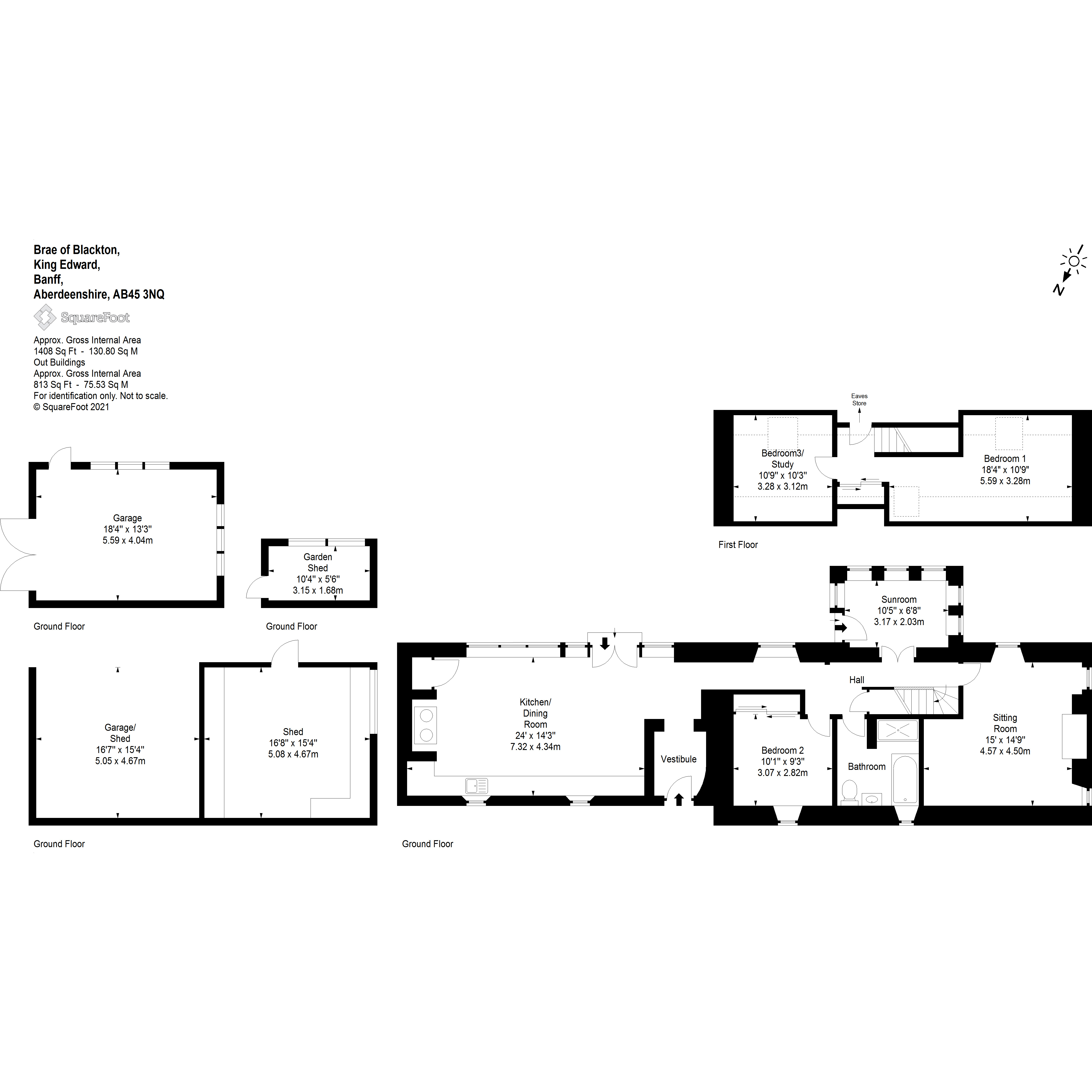 Brae of Blackton is a charming, detached cottage in the heart of rural Aberdeenshire. The cottage has a southerly aspect and sits just over 1 acre of ground with beautiful surrounding views of the countryside. The accommodation comprises an entrance vestibule, sitting room with wood burning stove with the original stone surround and exposed wall. The dining kitchen has a large picture window with a south facing aspect over the garden and french doors open out to the patio. There is plenty working, storage & dining space with an ‘Esse’ stove. The sunroom again overlooks the garden with door leading outside, and is currently used as an office, and the second bedroom is a generous double room with built in wardrobes. Completing the accommodation to the ground floor is the bathroom with bath and large, separate shower. Continuing upstairs, there is the main double bedroom with built in wardrobes and the third bedroom / study. Brae of Blackton is a perfect example of an idyllic, quiet outdoor country lifestyle. Sat in just over 1 acre there are charming garden grounds lying to the front, including a natural wild area of garden which attracts many wildlife and birds. Whilst to the rear there is the walled kitchen garden with potting shed allowing you to grow an array of fruit and vegetables and an enclosed chicken coop sits alongside. The fascinating honeyberry orchard lies to the north, on a south facing slope, with the property lined by young willow, oak, Scots Pine and fruit trees as well as a colourful wild rose and beech hedge. There are various workshops and garages for outdoor storage and workspace.Brae of Blackton is certainly a property to be viewed and is sure to be popular amongst buyers.ACCOMMODATIONGround Floor: Vestibule, hall, sitting room, sunroom, dining kitchen, bedroom 2 and bathroom.First Floor: Bedroom 1 & bedroom 3/study.GARDEN GROUNDSThe front of Brae of Blackton is south facing, with patio area, perfect for garden furniture. To one side is a large grass lawn area and to the other, a more natural garden with plants and shrubs which encourage wildlife and birds.To the rear there is a walled kitchen garden with potting shed and an enclosed chicken run. Thereafter the remaining land is planted with trees, grass, wildflower areas and the honeyberry orchard.Detached workshop, with electricity & light, and single car port/wood store.Detached timber clad garage with electricity and light and double doors.SERVICES, COUNCIL TAX AND ENERGY PERFORMANCE CERTIFICATE(S)Water PrivateElectricity MainsDrainage Septic TankTenure FreeholdHeating Oil CHCouncil Tax Band DEPC Band DSITUATIONBrae of Blackton is set in a beautiful and quiet countryside location, midway between Turriff and Banff. Turriff is a thriving town, where there is a good variety of shops and other well supported facilities including a swimming pool, library, community centre, sports centre, and golf course. The historic coastal town of Banff offers sailing facilities on the Moray Firth famed for its scenic beauty, small fishing villages and rich wildlife. There is a primary school at King Edward, 1.0 mile, and secondary education at both Turriff and Banff Academies.