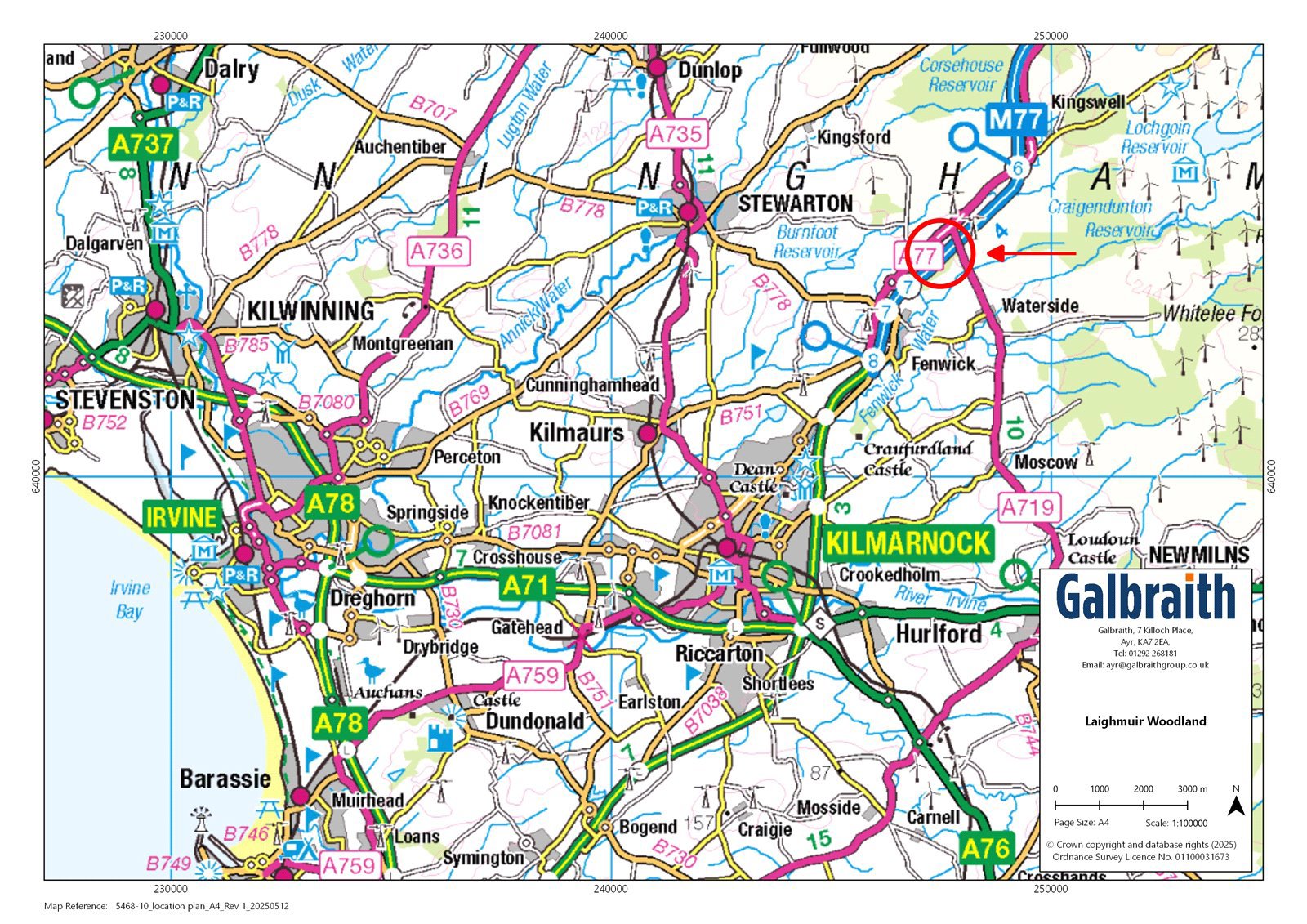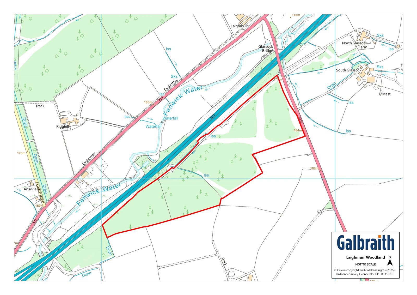 Laighmuir Woodland is situated about 2 miles north east of Fenwick, East Ayrshire and about 18 miles from Glasgow.Laighmuir Woodland extends to about 19.74 Ha (48.78 Ac). The woodland was established in 2005. The woodland comprises mostly Sitka Spruce and small areas of Scots pine, mixed broadleaves and open ground. The crop is now about 19 years of age and is some 16 years, from harvesting stage. The plantation can be accessed directly off the A719 and the woodland is on the west of the road. The A719 public road is an ‘Agreed Timber Haulage Route’ providing good access to timber markets. According to the Macaulay Land Use Research Institute, the underlying land at Laighmuir Woodland falls within Category 4(1) and 4(2) in terms of agricultural production. The land sits between 155 metres and 175 metres above sea level.The woodland composition can be broken down as follows:Sitka Spruce 10.08Ha 24.9AcMixed broadleaves 2.34Ha 5.78AcOpen ground 5.37Ha 13.27AcPine mix 0.38Ha 0.93AcTo be replanted 1.57Ha 3.87AcTotal 19.74Ha 48.78AcLaighmuir Woodland is offered for sale as a whole.ACCESSThe woodland benefits from direct access on to an Agreed Timber Haulage Route.LOCAL AUTHORITYEast Ayrshire Council, Council Headquarters, London Road, Kilmarnock, KA3 7BUSCOTTISH FORESTRYCentral Scotland Conservancy, Bothwell House, Hamilton Business Park, Caird Park, Hamilton, South Lanarkshire, ML3 0TAMINERALSThe mineral rights are included insofar as they are owned.TIMBERAll fallen and standing timber is included in the sale as so far as it is owned by the seller.SPORTING RIGHTSIn so far as these rights form part of the property title they are included within the sale.DEPOSITA deposit of 10% of the purchase price shall be paid within seven days of completion of Missives. Deposit will be non-refundable in the event of the purchaser failing to complete for reasons not attributable to the Seller or their Agents.DIRECTIONSFrom Glasgow, take the M77 south towards Kilmarnock. Take the exit Junction 6 (signed A77 Galston) and then turn left onto the A77. Continue straight on at Kingswell Interchange roundabout, and after about 1.85km turn left onto the A719 (Galston), continue for about 0.25km.WHAT3WORDSTo find this property location to within 3 metres, download and use What3Words and enter the following 3 words: remake.trending.radicallySOLICITORSHall Baird Solicitors Ltd, The Old Exchange, Castle Douglas, DG7 1TJVIEWINGStrictly by appointment with the Selling Agents.POSSESSION AND ENTRYVacant possession and entry will be given on completion or such mutual time to be agreed by the seller and the purchaser(s).ANTI MONEY LAUNDERING (AML) REGULATIONSPlease note that under the 2017 AML regulations we are legally required to carry out money laundering checks against purchasers. Upon verbal acceptance of an offer, we require to identify the purchaser for Anti-Money Laundering purposes. Our service provider ‘First AML’ will contact the purchaser to gather the required identification documents. An information sheet is available from the selling agent on request. We are not able to enter a business relationship with a purchaser until they have been identified. Failure to provide required identification may result in an offer not being considered.HEALTH & SAFETYThe property open woodland and appropriate caution should be exercised at all times during inspection particularly in reference to the forestry, open land and water courses.THIRD PARTY RIGHTS AND SERVITUDESThe subjects are sold together with and subject to all existing rights of way, servitudes, wayleaves and others whether contained in the Title Deeds or otherwise, and purchasers will be deemed as satisfied themselves in respect thereof.AMC PLC FINANCEGalbraith work with a number of lenders in the specialist agricultural market. We are able to introduce you to various lenders for a variety of farming purposes including the purchase of land and property, restructuring debt, and to provide working capital for diversification, improving or erecting farm buildings. Please note, Galbraith acts as an introducer, only and has no direct or indirect influence on the outcome of any lending application. Please discuss any funding requirements in confidence with the Selling Agent, or contact Alice Wilson in our Galbraith Ayr office on 07920 724906 Email: alice.wilson@galbraithgroup.com