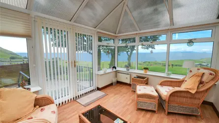 - An attractive bungalow with grazing land buildings and magnificent sea views.
