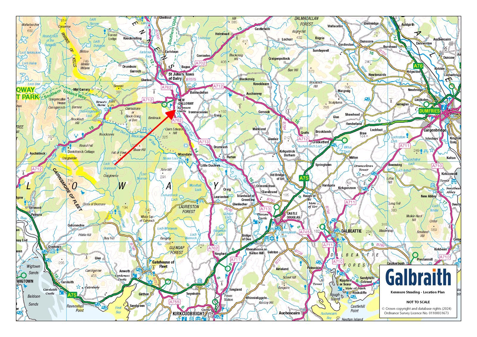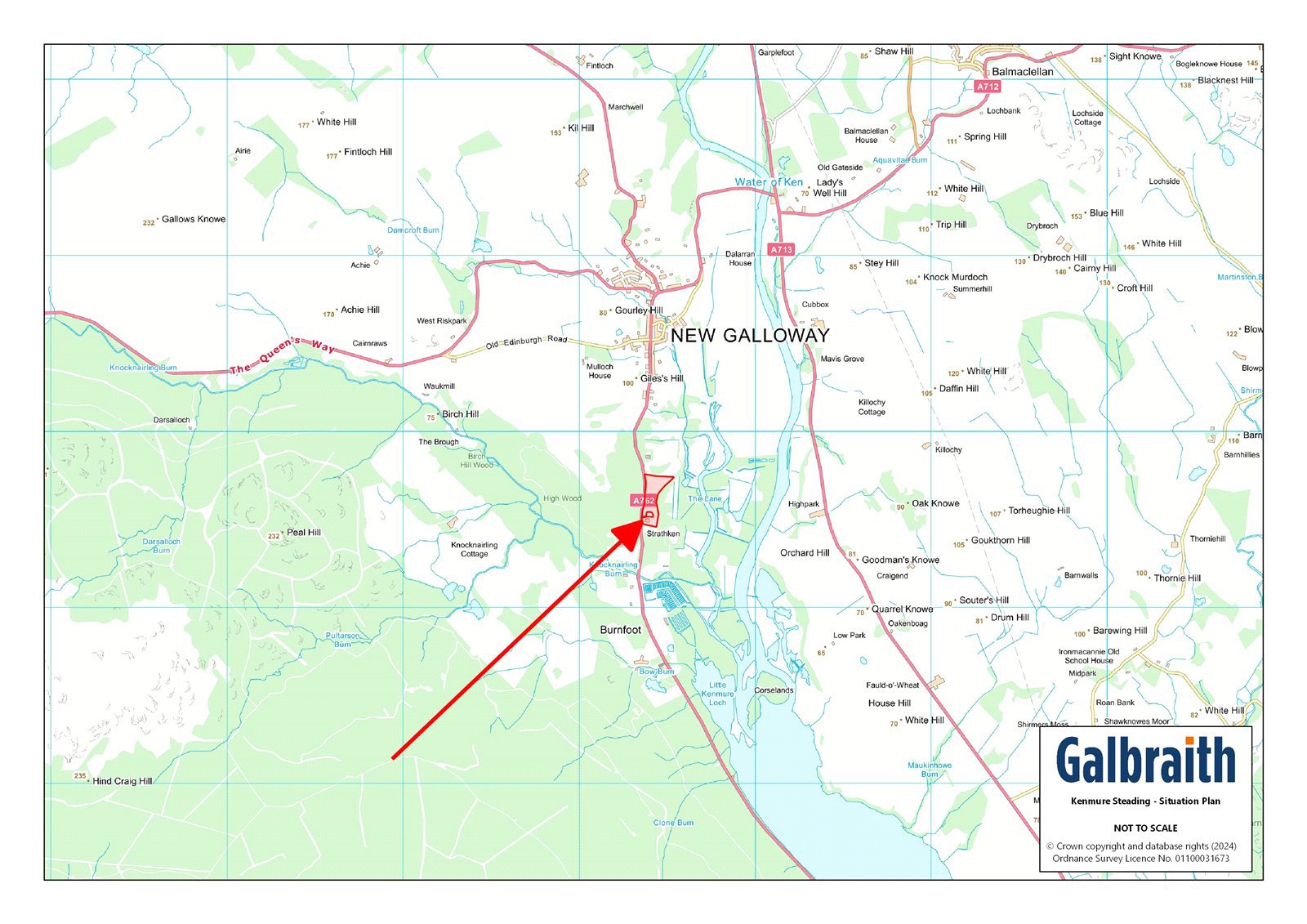 SITUATION Kenmure Steading is situated on the edge of Scotland’s smallest Royal Burgh New Galloway. New Galloway has two hotels, the popular Smithy Tearoom, community shop, Glenkens medical practice, as well as a popular 9 Hole Golf course. The village also boasts the Catstrand visitor centre with café, exhibition space, shop and 90 seater theatre where events run all year round. Kells Primary School is situated in New Galloway and buses provided to Secondary school in St Johns Town of Dalry and Castle Douglas. The nearby market town of Castle Douglas has a good range of shops, supermarkets, and other services, and is designated Dumfries and Galloway Food Town. The regional capital of Dumfries, about 25 miles distant, offers a wider range of shops, retail outlets and services including the Dumfries and Galloway Royal Infirmary and the Crichton Campus providing further education courses.Communications to the area are very good, with a daily bus service from New Galloway and railway stations in both Dumfries and Lockerbie. The M74 motorway is about 50 miles distant allowing easy access north and south. Regular flights to parts of the UK and Ireland as well as continental Europe depart from Prestwick Airport, which is 41 miles to the north. Both Glasgow and Edinburgh with their international airports are 77 and 105 miles respectively. A daily ferry service to Northern Ireland operates with Stenna Link from Cairnryan 46 miles to the west, close to Stranraer.DESCRIPTION Kenmure Steading historically stood as stables and accommodation space to serve Kenmure Castle, however was converted to Residential accommodation, in the 1960’s. Situated 1 mile south of New Galloway, a courtyard steading comprising 6 dwellings with a central courtyard accessed through an arch. Further storerooms and garages provide further space which could be to adapted to suit the buyers needs. There is a detached storage shed.. The steading benefits from a total of 6 acres of ground sitting to the north of the steading. Now in need of complete renovation this provides an exciting development opportunity to adapt and create a bespoke development specific to the buyers requirements. Offering broad appeal, the property could provide single or multiple dwellings or holiday lets, all subject to the necessary consents.ACCOMMODATION The steading is currently split into 6 units as follows: 1 The Steading – Three Bedrooms – EPC F272 The Steading – One Bedroom (Flat) – EPC E533 The Steading – Three Bedrooms – EPC F274 The Steading – Three Bedrooms – EPC F345 The Steading – One Bedroom (Flat) – EPC F276 The Steading – Three Bedrooms – EPC F313 Stores & 2 garages. Detached Storage Shed (6.9m x 3m)GROUNDS The grounds beyond the steading and courtyard extend to the north and include around 6 acres of grazing ground.