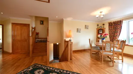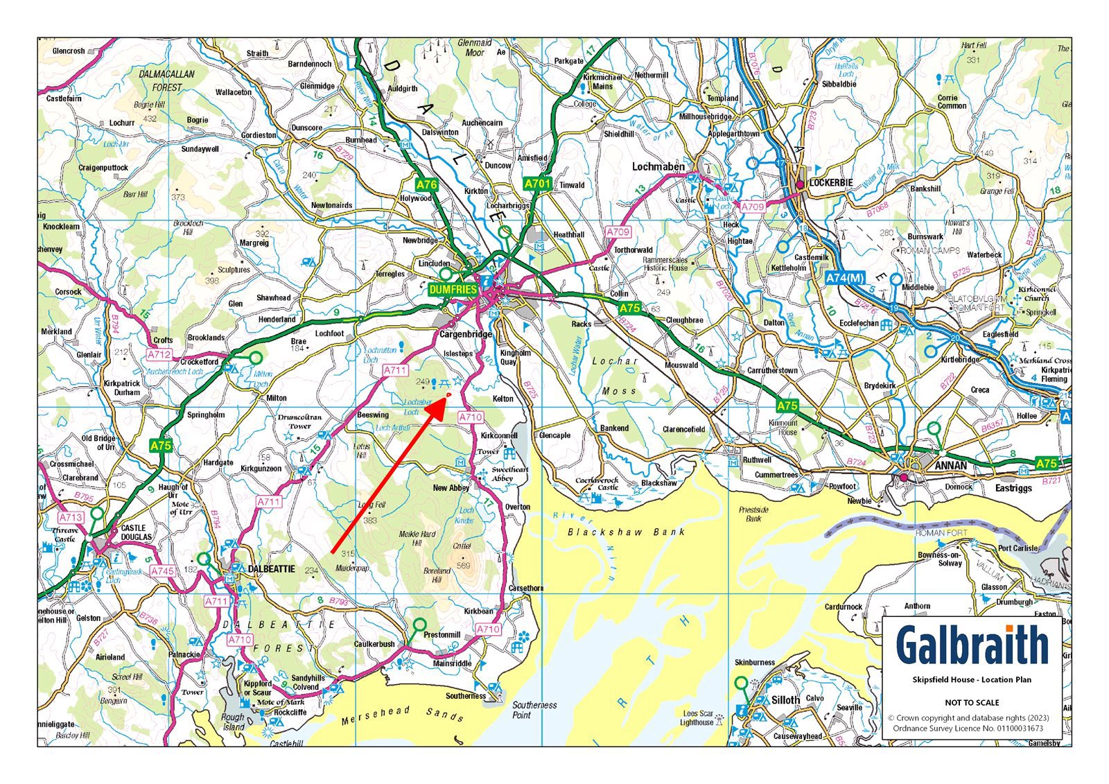 SITUATION Skipsfield House is located on the edge of Mabie forest with both the village of New Abbey and the principal town of the region Dumfries a short distance away. The location allows for excellent routes for walking, running, cycling & hacking enthusiasts. Nearby New Abbey is famous for Sweetheart Abbey, whose ruins are a landmark in the area. New Abbey also boasts a primary school, village hall, church, a popular village tearoom, village shop, small hotel, and a working water powered corn mill. Dumfries which is approximately 5.5 miles away is the principal town in the area, and provides a wide range of schools, shops, retail outlets, and other services including a major hospital, the Dumfries and Galloway Royal Infirmary. Dumfries is also home to the Crichton campuses of both Glasgow University and the University of the West of Scotland.Communications are good with the A75 giving good access to Carlisle in the east and to Stranraer in the west. There is a main line railway station in Dumfries with connections to Carlisle, Newcastle and Glasgow, and in Lockerbie with connections to Edinburgh, Glasgow and Manchester. The M74 motorway link north and south, can be accessed easily by following the A75 to Gretna or Lockerbie. International and domestic flights are available from Prestwick, Glasgow and Newcastle. DESCRIPTION Skipsfield House was designed by the current owner together with a local architect and completed in 2007. Comprising a split level property with about 5.1 acres in all in a commanding elevated position with stunning far reaching views in the small hamlet of Mabie. The property offers generous family accommodation with a fine balance of both reception space combined with quality bedroom space. The kitchen/breakfast /snug area provides the heartbeat of the home, with that open plan/sociable aspect that many desire. Supported by the utility room to the rear with door to the garden. The large multi aspect living room with doors to the rear patio and dining area flooded with natural light complete the reception space offering. Bedrooms are spread over each of the levels with the master bedroom on upper ground floor with en suite, dressing room and further Hobby/Office space beyond, ideal for those looking to work from home or needing that dedicated space. Externally the field acreage to the rear offers great flexibility and lends perfectly to those seeking a lifestyle interest, if that be equestrian, livestock, ‘grow your own’ or subject to consent those that may look to a more tourist appeal. Skipsfield House has many desirable attributes and offers a unique opportunity to purchase a property in this desirable area. Lower Ground Floor:Bedroom. Shower Room. Bedroom. Integral Double Garage. Ground Floor:Front Porch. Entrance Hall. Dining area. Living Room. W.C. Bedroom. Kitchen / Breakfast Room/ Snug. Utility Room. Upper Ground Floor:Bedroom En suite Shower Room. Dressing Room. Office/Hobby Room. GARDEN AND GROUNDS Extensive garden grounds wrap around the property. To the front, predominantly tarmac, providing extensive hardstanding / parking space and leading to the garage entrance. The side and rear, tastefully landscaped and softened with some planting predominantly lawn with an area of paving to the rear of the property where you can enjoy the peaceful countryside surrounds. A great space for socialising and entertaining family and friends. The field enclosure immediately to the rear of Skipsfield House provides ideal grazing ground for those with livestock or horses. The current owner has previously grazed horses. Separate field access for vehicles and water supply. The locality surrounding Skipsfield House provides excellent hacking opportunities. In all, grounds extend to 5.1 acres.