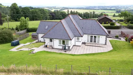 • Striking architect designed home comprising a split level property with about 5.1 acres in all in a commanding elevated position with stunning far reaching views in the small hamlet of Mabie.