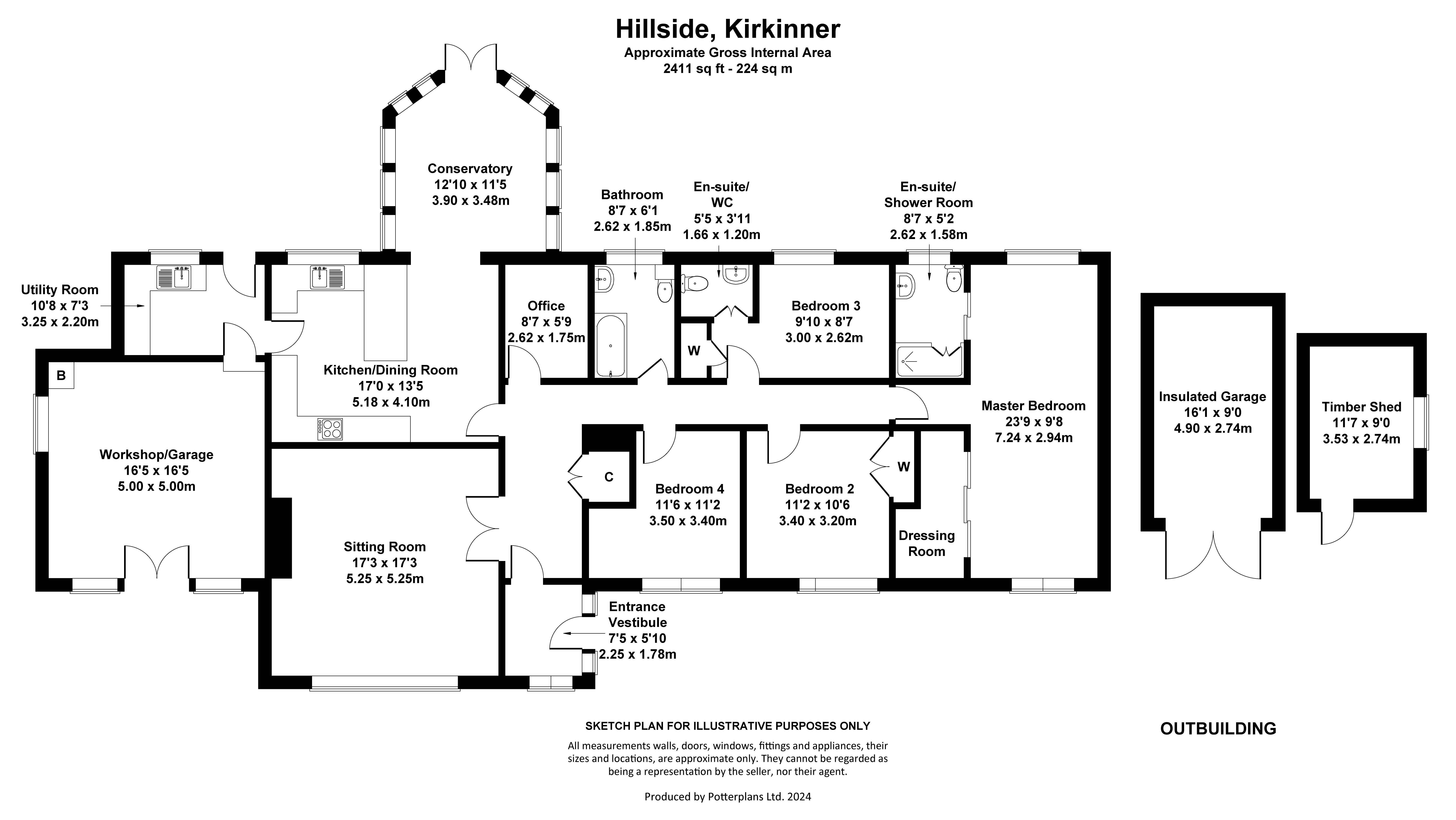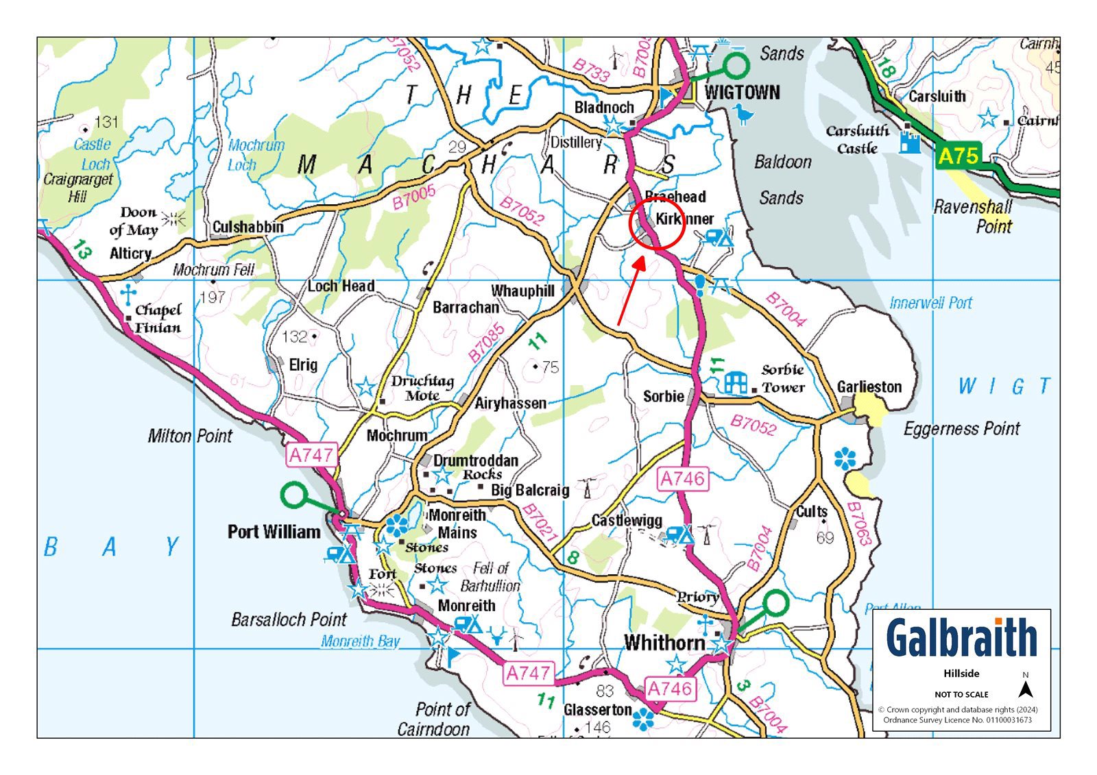 SITUATIONHillside is situated in Kirkinner on the edge of village and set back from the Main Street. Kirkinner is a small rural village in Wigtownshire with a primary school, shop & post office, small play park, village hall, sports hall and bowling green. Kilsture Forest is nearby for woodland walks and the harbour village of Garlieston and Rigg Bay are less than five miles away, ideal for coastal walks, fishing or boating activities. Hillside is also close to other ports and harbours on the peninsular including the Isle of Whithorn. Wigtown, Scotland’s National Book Town, is just over three miles from Hillside and hosts a very successful book festival in late September. The town becomes a hub of activity as people come to listen to authors, visit the many bookshops, eat in the cafés and wander through the town where local artists and craftspeople display their work. Wigtown has a primary school, various denomination churches, supermarket, a number of smaller shops, a golf club and Scotland's southernmost whisky distillery is in nearby Bladnoch. Newton Stewart, a more commercial town, is known as the Gateway to the Galloway Hills. It has a number of primary schools, the Douglas Ewart High School, a museum, leisure centre, three supermarkets, a bank and a post office which offers all postal and banking services, a cinema, and a wide range of shops, offices, businesses, hotels and restaurants. The area is well known for outdoor pursuits and sports. Kirroughtree Visitor Centre, situated approximately 12.5 miles from Hillside, is part of the Seven Stanes range of mountain biking trails and has a number of designated walks. The Galloway Forest Park is one of the best places in Britain to enjoy the night sky, the Galloway International Dark Sky Park is committed to protecting dark skies by controlling light pollution.Communications to the area are good, there is a regular bus service and the bus stop is just opposite the entrance to Hillside on Main Street. Trains operate from stations in Stranraer, Dumfries and Lockerbie. Ferry links to Northern Ireland run from Cairnryan, which is approximately 32 miles from the property. The international airports of Prestwick and Glasgow are approximately 54 miles and 88 miles from Hillside respectively. DESCRIPTION Hillside is a spacious 4 bedroom bungalow, occupying a substantial plot and tucked away from the Main Street in rural Kirkinner. Hillside enjoys far reaching views over the surrounding countryside and to the Galloway Hills from the garden behind. The entrance vestibule leads into the hallway which opens in to all accommodation. There are two reception rooms, a sitting room, the principal room, and a conservatory which extends in to the garden. The sitting room situated to the front of the property, with a LPG gas fire contributing to a cosy night in in the cooler evenings with further storage options. The kitchen adjacent has a range of fitted wall and floor units, a breakfast bar with under counter storage, an LPG gas hob and Symphony electric oven and grill. The kitchen opens through to utility room with a second sink and drainer, fitted shelves, space and plumbing for white goods and a chest freezer. Doors then open directly into the garage and out to the garden. The kitchen connects to the light and spacious conservatory, with French doors opening to the patio. There are four bedrooms, the double aspect master bedroom has a dressing room hidden within the fitted wardrobes and a separate shower room. Bedroom 2 has fitted wardrobes , bedroom 3 has fitted wardrobes and an en-suite WC. Bedroom 4 is currently utilised as a living room/snug, this room offers flexibility depending on the needs and requirements of the new owner. The integrated garage (5m x 3.25m) is currently a workshop with fitted shelving, side window, concrete floor and strip lighting. The Worcester boiler is housed in the garage and serviced annually. The double doors could be replaced with a garage door, reinstating the opportunity to park a car in the garage. There are two outbuildings including an insulated garage with box profile cladding and electricity (4.9m x 2.74m) and a timber garden shed (3.53m x 2.4m).Hillside is a hidden gem within a peaceful attractive village, with a big community spirit. ACCOMMODATION Ground Floor: Entrance Vestibule, Sitting Room, Kitchen, Utility Room, Conservatory, Office, Bathroom, Bedroom 2, Bedroom 3 with en-suite WC. Bedroom 4, Master Bedroom with en-suite Shower Room. GARDEN The access road opens to an area of gravel for parking, lined with borders filled with mature shrubs and trees. There is an area of lawn to the side of the property with a number of fruit trees and bushes including 2 apple trees, 2 pear trees a plum tree, cherry tree and blackcurrant, blueberry and gooseberry bushes.A paved pathway leads to a sheltered and private back garden with a rocky banking forming the boundary with the field adjacent. A water feature flows well with the steep incline and an array of plants and shrubs in raised beds provide colour. Steps lead to the top of the bank where the view and be admired. Deer are often seen grazing in the field and often a woodpecker is one of the many visitors to bird feeders in the garden. ACCESS/THIRD PARTY RIGHTS OF ACCESSHillside owns the entrance from Main Street and neighbours have a right of access over this road. DIRECTIONS Arriving in Kirkinner from the north side pass through Braehead and continue in to Kirkinner, passing the primary school on your left. Continue on Main Street until you see the green bus stop on the right hand side, directly opposite the bus stop there is a sign for Hillside and a private driveway to the property. POST CODE DG8 9AN WHAT3WORDSTo find this property location to within 3 metres, download and use What3Words and enter the following 3 words: width.radiated.geology