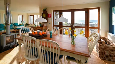 - Coastal theme décor with central wood burning stove