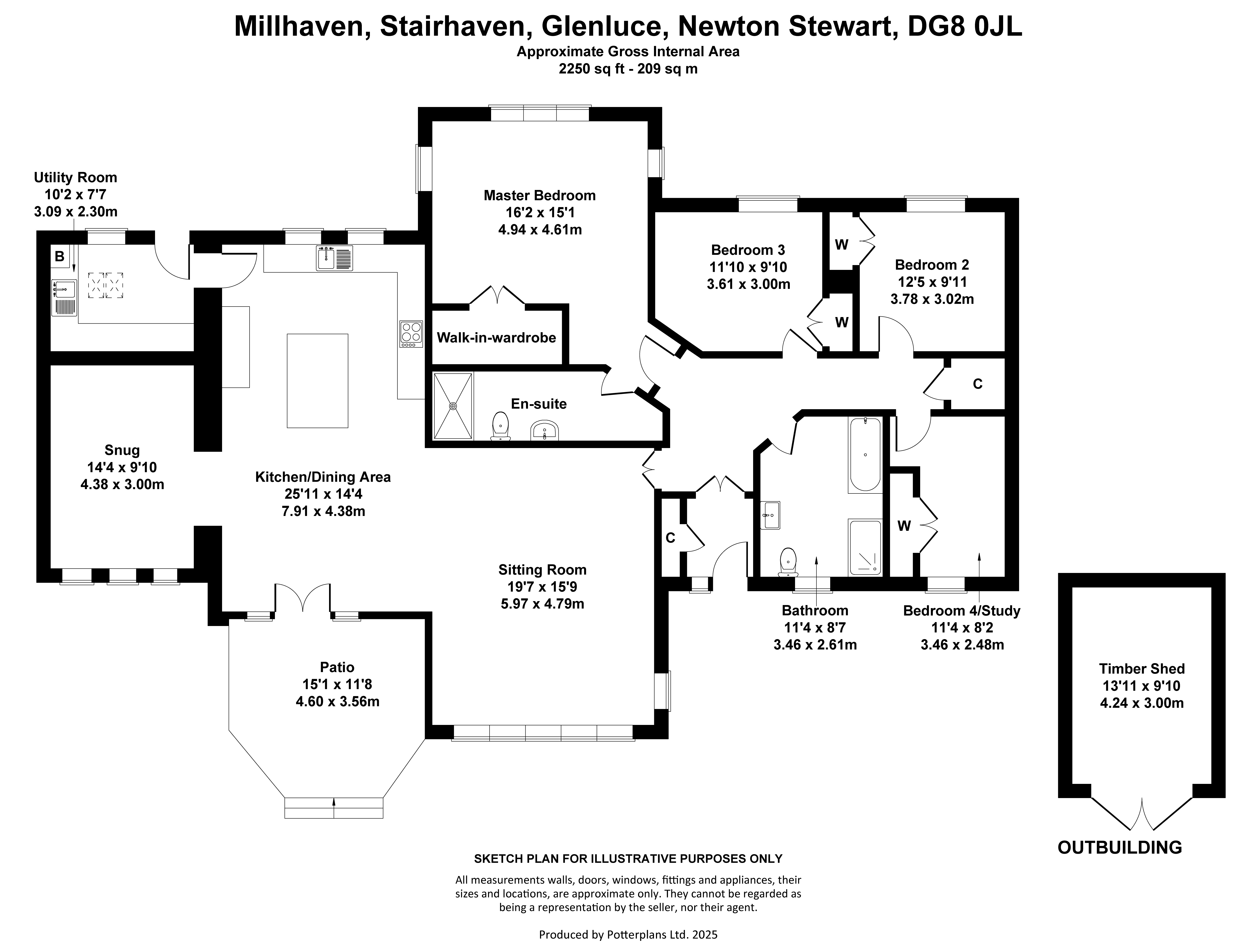 SITUATION Millhaven is situated in single row of residential properties in the small coastal hamlet, Stairhaven. This peaceful rural location is just a stone’s throw from the stunning coastline, with a backdrop of rolling countryside. A coastal walk over the cliffs from Stairhaven to Auchenmalg provides stunning views over Luce Bay below to the coastline beyond. The nearest village is Glenluce, 2.1 miles from Millhaven which has a shop, doctor’s surgery, church, primary school, golf club (County Golf Club) bowling club, public house and small gym. The nearest town Stranraer, benefits from a secondary school, primary schools, hospital (Galloway Community Hospital), supermarkets, shops, offices, hotels, restaurants, and the Ryan Leisure Centre and Theatre. Stranraer has a marina located at the southern end of Loch Ryan and hosts an annual Oyster Festival annually to promote the wonderful Loch Ryan oysters and other local food and drink. The Loch also hosts major sporting events including the Skiffie Worlds. Both curling and horse riding are very popular in the area, nearby Stranraer & District Riding Club offers training and holds regular events, and curling is available at the North West Castle, Stranraer. This area of south west Scotland is home to some beautiful scenery, with numerous coastal villages around Luce Bay and Wigtown Bay. The Galloway Forest Park nearby offers walks and mountain bike trails and is part of the UK’s first Dark Sky Park, giving it breath-taking views of the night sky. Further west Logan Botanic Gardens, Scotland’s most exotic gardens and Gallie Craig, a Cliff Top Coffee Shop are just two exceptional places to visit whilst in the area or on a day out. Communications in the area are good, trains to Ayr and Glasgow are available from the station in Stranraer. The Port of Cairnryan is just over 6 miles from Stranraer and two ferry operators run passenger and freight services to Northern Ireland both Larne & Belfast. DESCRIPTION Millhaven is a spectacular bright and spacious 4 bedroom bungalow, enhanced with vibrant colours and interior design reflecting the coastal location. On entering Millhaven you are met with a well-lit hallway and double doors opening to the hub of this home, where four rooms combine seamlessly to form one large space for relaxing, entertaining, cooking and dining. The snug, dining area and sitting room comprise wall to wall windows, framing the views and French doors open to the elevated patio from the dining area. The kitchen has an electric Rangemaster cooker and an integrated Bloomberg dishwasher & fridge/freezer. The adjacent utility room, which opens to the garden behind, includes: a Zanussi tumble dryer, Bosch washing machine, Grant central heating boiler and stainless-steel sink. The snug is a flexible space, currently an additional place to relax, but this could also be utilised as an office or playroom, depending on the needs and requirements of the new owners. A solid wooden floor extends the full length of the kitchen/dining and sitting room with a double sided wood burning stove, set on a granite hearth, between the dining and sitting room provides both additional heat when required and a focal point for the space. All four bedrooms are accessed from the hall, the triple aspect stunning master bedroom is flooded with natural light and has both a walk-in wardrobe providing essential storage space and an en-suite shower room. The master bedroom and bedrooms 2 and 3 all overlook the garden and farmland behind and have fitted wardrobes, bedroom 4 is currently a study and craft room, a room with a sizeable fitted wardrobe and sea views. The bathroom adjacent embraces the beach theme and benefits from both a bath and walk-in shower. Millhaven has a wealth of storage space including a cloakroom cupboard in the entrance vestibule, ideal for outdoor clothes and sandy shoes after walks along the beach and a walk-in cupboard at the end of the hall. Millhaven is south facing and there is the potential to site solar panels on the roof, with the relevant consents and permissions. The solar gain from the front facing windows, especially the triple glazed sitting room windows, provides a natural even warmth throughput Millhaven. The property benefits from the option to connect to the local cabinet, giving access to superfast broadband - ideal for home working and streaming. Millhaven is an impressive home by the sea, a full-time residence or holiday home in a desirable picturesque coastal location within a short distance of local amenities. ACCOMMODATION Ground Floor: Entrance vestibule, Open plan Sitting Room/Dining Area/Kitchen and Snug. Utility Room. Master Bedroom with en-suite Shower Room. Bedroom 2. Bedroom 3. Bedroom 4/Study. Family Bathroom. GARDEN (AND GROUNDS)The tarmac driveway at Millhaven provides parking space for several vehicles, and there is additional parking space to the side of the property. The highlight of the garden is the raised patio, accessed from dining area and garden, offering a stunning setting to dine alfresco during the day or in the evening as the sun sets over the Bay. The low maintenance garden has designated areas of gravel and paved pathways and a number of raised beds for both vegetables and herbs. Cordylines flourish in the sea air at Millhaven and careful planting has ensured this garden comes to life in early spring. There is a greenhouse, a small area of lawn and a steep banking behind provides both privacy and shelter. A timber garden shed (4.24m x 3m) provides storage for garden equipment and furniture and a second shed, previously a kennel, is used to store logs for the wood burning stove. Cordylines flourish in the sea air at Millhaven and careful planting has ensured this garden comes to life in early spring. DIRECTIONS If travelling from Stranraer turn right on the A75 at Glenluce where it is signposted for Stairhaven, and left if you are travelling from the east. Follow the coastal road for