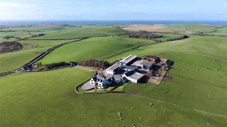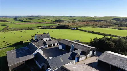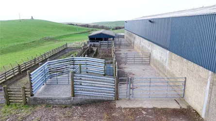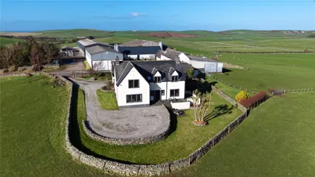 SITUATION Drumdow Farm is situated in an elevated position near the northwest coast of the Rhins of Galloway peninsula and located 2 miles from the small village of Kirkcolm and 6 miles from Stranraer. Kirkcolm has a primary school, church, community hub and two hotels.Stranraer has a wider range of amenities including primary schools a secondary school, hospital (Galloway Community Hospital), offices, shops including three supermarkets, restaurants, and various leisure facilities including a marina.The delightful fishing and sailing village of Portpatrick is about 12 miles south of Kirkcolm, a very popular seaside location which attracts visitors all year round. There are a number of shops, a primary school, church, putting green, beachfront hotels & restaurants.Communications to the area are very good with the A75 trunk road providing quick access from the south via the M6, A74 and M74. The ferry links to Northern Ireland run from Cairnryan, which is approximately 14 miles from Drumdow. Glasgow international airport is approximately 98 miles from the property.METHOD OF SALEDrumdow Farm is offered for sale as a whole. Neighbouring Balgown Farm (in separate ownership) is also on the market available to purchase, subject to separate negotiation. This would create a mixed holding of around 1000 acres.DESCRIPTION Drumdow Farm is a well renowned beef rearing farm, winning the Scotch Beef Farm of the Year Award in 2016. The farm runs a calving herd of 220 cows and heifers, known as Black Baldies, all calving to Hereford and Angus bulls. All cows and bulls are outwintered on a 52 hectare moor, making the best use of the unique topography of the region to its best advantage. The current system had cows that are home-bred with heifers joining the herd calving as two-year-olds. The farm has an active Facebook Page ‘Drumdow Black Baldies’ which showcases the farms activities. The farm also had 200 easycare ewes and gimmers across the holding as well as taking on wintering for 150 Blackface lambs. As one of the finest farms in the North Rhins of Galloway, Drumdow offers an excellent opportunity to undertake productive activity in this early grass, gulf stream influenced part of the UK, which is synonymous with producing some of the best livestock and produce in the UK. The farm is a well-equipped beef and sheep unit, which could support an array of stock rearing enterprises.DRUMDOW FARMFarmhouse Drumdow Farm Farmhouse is an excellent comfortable farmhouse, constructed 1994, under a slate roof enjoying a south easterly aspect. The accommodation arranged over two floors, as shown in the accompanying floorplan, comprises: Ground Floor: Entrance Hall, Utility Room, Boiler / Drying Room, Farm Office, Sun Room, Kitchen / Dining Room, Staircase Hall, Sitting Room, Snug. First Floor: Master Bedroom Suite, Three Double Bedrooms, Bathroom, Cupboards. The adjoining former traditional steading building has been partially converted to provide an occasional bar and entertaining area, with a bathroom and stores, but is not a permanently habitable feature of the property. FARM BUILDINGS Drumdow Farm is a very well-equipped holding, with a farming system that makes the most of the land across the farm, from wintering the cattle on the moor to highly productive grassland for silage and grazing, with rotational crop fields for fodder production if desired. The excellent range of buildings lie to the north of the farmhouse with a sizeable courtyard area to the rear of the house, with traditional and modern buildings and stores, with modern stock housing and bespoke cattle handling yard adjacent (the cattle crush is available by separate negotiation). The steading benefits from three phase electricity. In accordance with the enclosed steading plan, the farm buildings comprise: A traditional U-shaped range which has been well maintained and is used for a variety of purposes. They are predominantly of stone and slate construction with concrete floors. Log Store - 2.5m x 4.8m Covered Car Port - 4.6m x 7.8m Byre - 15.7m x 4.1m Two Storey Byre This traditional building has a workshop (10.1m x 4.9m) and store (5.3m x 5.6m) on the ground, and a large 1st floor storage area (16.3m x 3.9m) which houses the controls and meters for the wind turbine. Kennels – 12.2m x 4.9m Calf Housing – 23.0m x 6.7m Benefiting from a modern box profile roof, this traditional stone building has been upgraded to provide youngstock loose housing. Modern Buildings Lean-To Cattle Court – 21.9m x 12.71m Stone and block walls with Yorkshire board and box profile cladding, fibre cement roof and feed barrier. General Purpose Shed – 10.35m x 27.14m Currently used as a feed and grain store, this GP shed is of modern steel portal frame construction with block walls, concrete floor, fibre cement roof and box profile cladding. Cattle Shed 1 – 26.78m x 27.19m Separated into four internal sections with a central feed passage. The building is constructed of a concrete frame, walls and floor, fibre cement cladding and roof and Yorkshire board gable cladding. Cattle Shed 2 – 54.84m x 12.54m Open on one side with feed barriers and concrete external path, this shed provides cattle housing and storage. It is constructed of concrete shutter walls, steel portal frame, vent air and Yorkshire board cladding, and fibre cement roof. Covered Handling Facility – 13.93m x 5.74m Currently housing a crush, it is constructed of steel portal frame, concrete walls and floors, box profile cladding and fibre cement roof. Nissen Style Store Small tin cylindrical building used for storage with brick base. Shed at Bankswell – 26.24m x 10.47m A general purpose building currently used as a straw and machinery store. It is constructed of stone and block walls, with steel portal frame, tin cladding, tin and box profile roof and earth floor. THE TURBINE A 100Kw WES (Wind Energy Systems) Wind Turbine was erected in 2012 and provides a useful income to the farm, exporting a