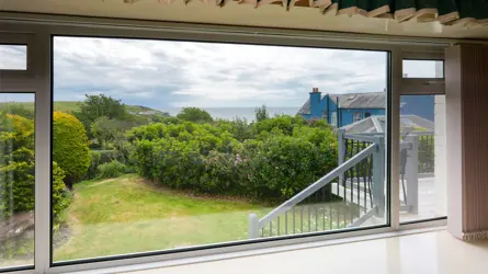 - Elevated decking with sea views.