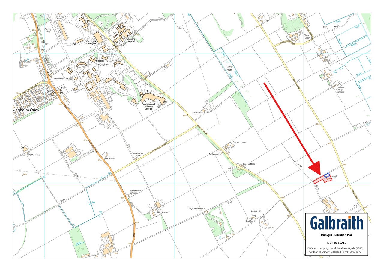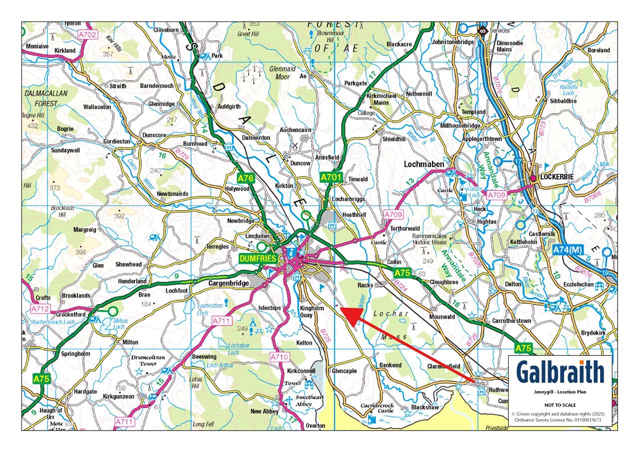 Available as a whole or in two lots:Lot 2 not to be sold in advance of Lot 1.Lot 1 – Jennygill House Offers Over £425,000Lot 2 – Jennygill Cottage Offers Over £195,000 Whole - Offers Over £625,000SITUATION Jennygill is situated in a highly attractive rural location on the South Eastern aspect of Dumfries, just a short distance from Dumfries town centre. Jennygill provides all the benefits of rural living, yet with the added benefit of the town just a short distance away. Within easy reach of the A75 and the Dumfries bypass, links are provided to both east and west of the region. Additionally, excellent communication links North and South on the M74 motorway from Lockerbie & Moffat 15 miles and 25 miles respectively. Dumfries and Lockerbie railway provide connections North and South. Dumfries, the principal town in the area, provides a wide range of schools, shops, retail outlets, and many other services including newly sited Dumfries and Galloway Royal Infirmary. Jennygill is conveniently located for Mountainhall Treatment Centre and the University Campus, both within 2.5 miles. The elevated site of the property allows for far reaching uninterrupted countryside views. Lake District and the Solway estuary can be seen on a clear day. Caerlaverock wetland trust is approximately 6 miles from Jennygill where thousands of barnacle geese descend each year.Jennygill cottage is a detached, 2 bedroom cottage, beautifully finished throughout and offering oil fired underfloor heating and double glazing. Double doors, from the dining room, open to a patio area to the front, where the far-reaching views can be enjoyed.Accommodation comprises of:Kitchen. Shower Room. Dining Room. Bedroom. Living Room. Bedroom.There is specific parking for the cottage to the rear of the property.Garden - to the front of the cottage is a lawned area.