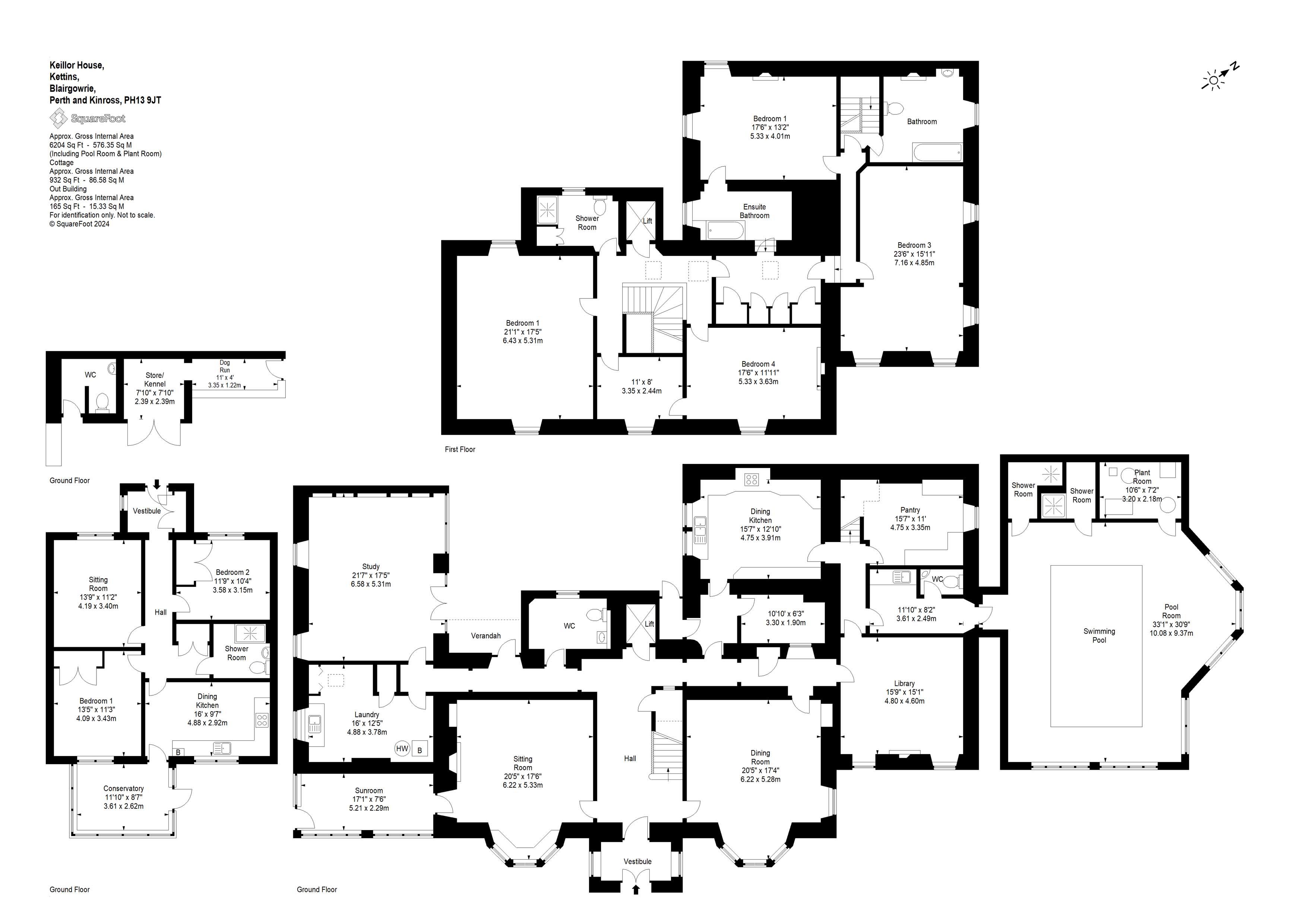 SITUATIONKeillor House lies in a quiet rural setting, some 2 miles to the west of the pretty village of Newtyle in the county of Perthshire. Newtyle is a thriving village with modern primary school, village shop with post office, butcher and church together with various community clubs. Coupar Angus lies just 3 miles to the east offering a broader range of services whilst Blairgowrie, which can be reached in approximately 15 minutes by car, to the north with good day to day facilities including supermarkets, cafés, restaurants, health centre and secondary schooling.Dundee, known as the ‘City of Discovery’ is some 12 miles distant and home to the V&A Museum, Discovery Point where the RSS Discovery is permanently moored, together with national retailers, two universities and airport. Perth (16 miles) also provides an excellent range of services including a modern concert hall, recently refurbished theatre, museum and restaurants.Both Edinburgh and Aberdeen lie some 65 miles distant and can both be accessed easily by road and by rail from Dundee. Further, Dundee airport provides regular daily flights to London. There is a wide array of outdoor pursuits within comfortable reach of Keillor House; walking can be enjoyed both on the Sidlaw Hills and slightly further afield to the north in the Grampian and Cairngorm mountain ranges. For the golfer, there are a number of courses within easy reach including the championship course of Rosemount at Blairgowrie and two courses in Perth. In addition, there is an 18 hole course in Dunkeld whilst both the championship courses at both Carnoustie and St Andrews can be reached in less than an hours journey by car. Sailing can be enjoyed on the Tay Estuary and around the coast with salmon fishing available to be taken on the River Tay, North Esk and South Esk. Perth Racecourse holds regular meets throughout the year with the Dewars Ice Rink being home to the Perth Curling Club. The ski slopes of Glenshee are about an hour’s drive north for the winter sport enthusiast.DESCRIPTIONKeillor House is a beautiful period country house of principally stone construction under a slated roof with sash and cash windows and a pretty entrance porch. It enjoys a southerly aspect overlooking the pretty parkland field to the front flanked with mature deciduous trees and cascading ponds, providing a most attractive and mature backdrop to the house. Following its purchase, the current owners undertook a programme of refurbishment resulting in a well presented and practical family house boasting a wealth of period features throughout.On entering Keillor House the charm is immediately evident in the hall with a sweeping wooden staircase, part wood panelling and cornicing. Panelled doors lead to both the drawing room and dining room; these two principal reception rooms enjoy high ceilings, bay windows, wooden floors, ornate cornicing and period fireplaces. A door leads from the drawing room into the garden room, a delightful and quiet room with tall south facing windows from where to enjoy the peaceful surroundings.To the east side of the house is the library, a most cosy and intimate room with fitted bookcases, fireplace and south facing windows. The breakfasting kitchen is at the rear of the house and has an excellent range of fitted floor and wall cupboards with a walk in larder with the butler’s pantry adjacent. To the west side of the house is a superb, good sized family room which offers multiple potential uses such as a studio, playroom or home office. Beyond is the generous and practical laundry room.Unusually, Keillor House has an indoor swimming pool, forming the east wing with generous windows overlooking the grounds. There are two showers and a WC, together with a small kitchen area, resulting in a superb space for the whole family to enjoy. The bedrooms lie on the first floor. The principal bedroom is generously proportioned with a double aspect and lies adjacent to a family bathroom. There are further three double bedrooms, one with a dressing room, serviced by two further bathrooms with a single bedroom completing the first floor accommodation.The accommodation can be summarised as follows:Ground Floor:Vestibule, Hall, Drawing Room, Garden Room, Dining Room, Library, Family Room, Kitchen, Larder, Butler’s Pantry, Laundry, Cloakroom, Swimming Pool with 2 Showers and WC.First Floor:Principal Bedroom, 3 further Bedrooms, Box Room, 3 Bathrooms.GARDENS AND GROUNDSKeillor House sits within delightful gardens and grounds extending to about 9.40 acres providing a mature setting for this charming country house. A pair of electric gates lead to a tree lined drive with rhododendrons giving wonderful colour in spring. The drive leads to a gravelled parking area to the front of the house, with further parking to the rear. Beyond the front garden and in front of the parkland field, are a series of cascading ponds with bridges giving access to the field.To the rear of the house is a delightful walled garden which has been thoughtfully designed to create a secluded garden with well stocked borders, neat paths and a pond. Keillor House has a fine collection of mature trees throughout the gardens and grounds complimented with the planting of hedges resulting in a country house offering superb privacy and seclusion.Keillor House benefits from a number of useful outbuildings providing garaging and storage and includes a traditional stone kennel with run.KEILLOR COTTAGELying to the east of the principal house is a lovely modern cottage, constructed in 2008. It has a harled exterior under a slate roof with a gravelled parking area to the front and a pretty garden to the rear.The accommodation comprises:Vestibule, Kitchen, Sun Room, Sitting Room, 2 Bedrooms and Bathroom.