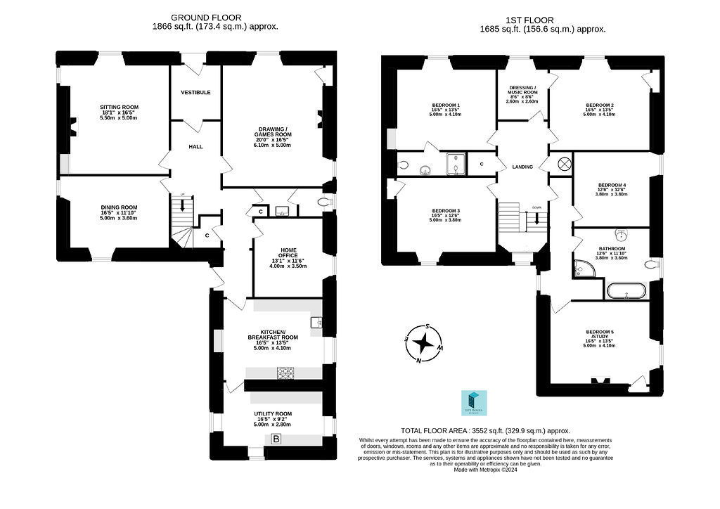 • 3 reception rooms, 5 bedrooms, home office.