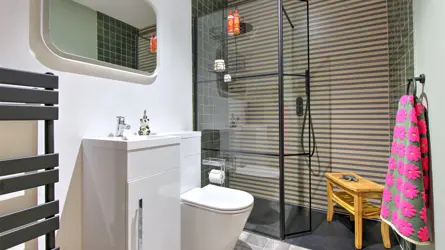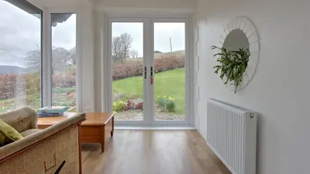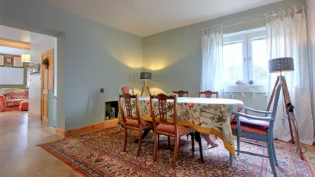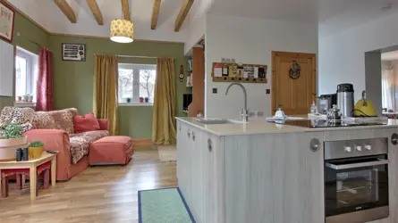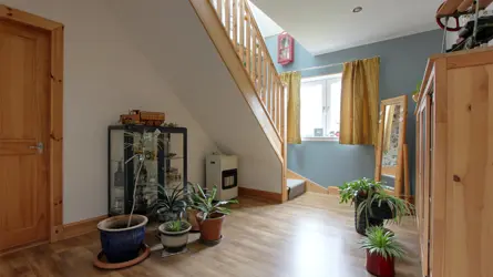 - Energy efficient with biomass boiler, solar panels, thermal store and inverter