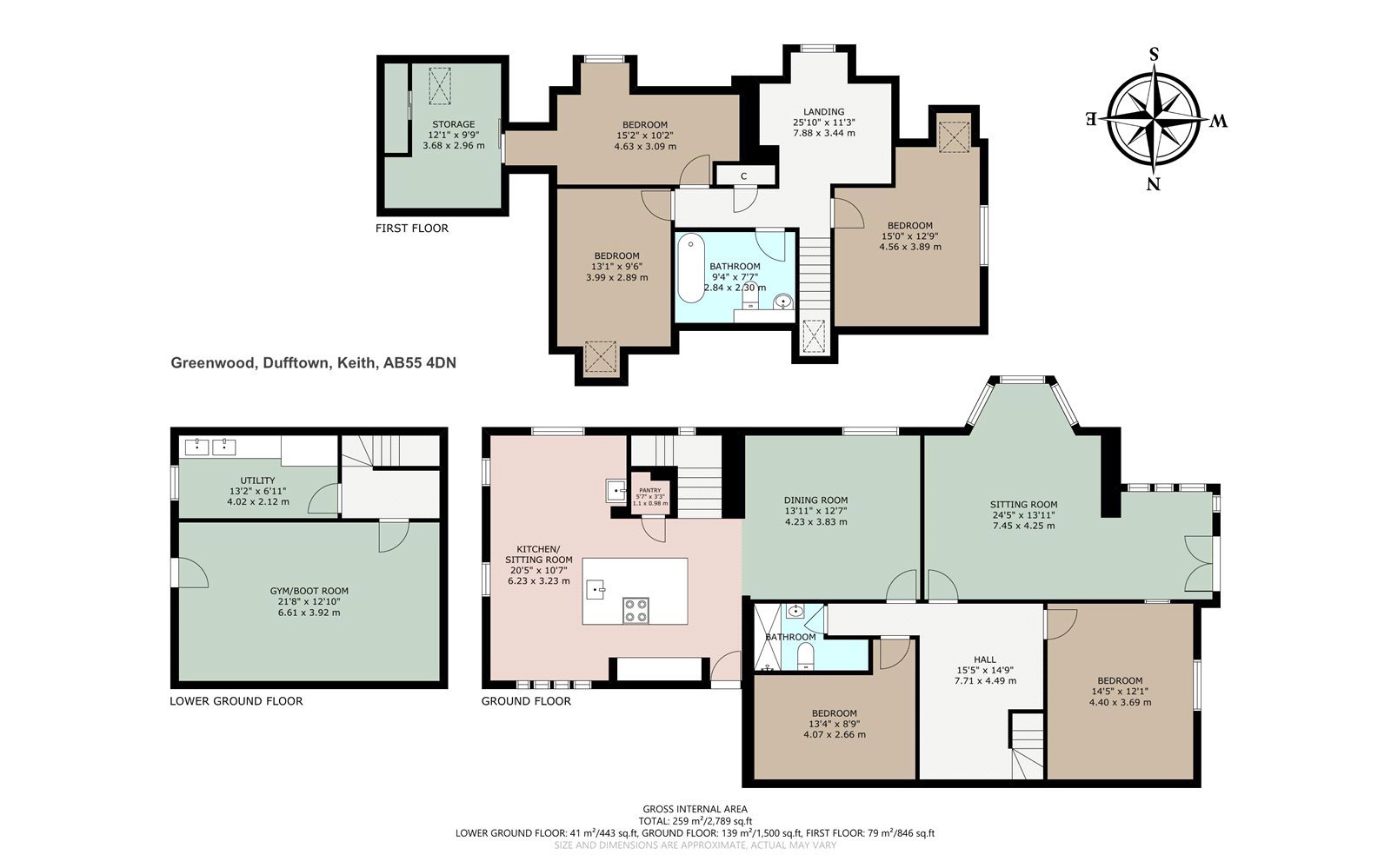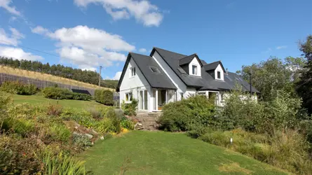 Greenwood is an impressive modern house located in an accessible position near Parkmore and just 1.5 miles from the historic and popular Speyside village of Dufftown. Dufftown has good range of day to day amenities including a well-regarded primary school, a village hall for community events, a Church, convenience store, Post Office and various hotels, pubs and coffee shops. With easy access to the Spey, Cairngorms and Moray coastline, the area has a rich and diverse range of services and amenities and is becoming a haven for arts, cultural and social events with many new independent shops in the area.Elgin (about 19 miles) is the principle town in the country and has a wide range of amenities including various major supermarkets, a library, a good selection of independent shops, various sporting and recreational facilities and a train station providing direct links to Aberdeen and Inverness. Aberdeen and Inverness provides all of the facilities expected from modern and prosperous cities, with an excellent selection of shopping, retail parks and associated services, rail links and airports.Originally built as a smaller traditional cottage, Greenwood has been extended and improved in recent years, creating what is now a very appealing and energy efficient family home. Built predominantly from brick and rendered block under a pitched slate roof, the house provides well-appointed and flexible accommodation over three storeys. From the driveway, a door opens to the lower ground floor boot room/gym which leads on to a hallway. To the left is a utility room with a wood pellet central heating boiler, stainless steel sink / worktop and space for various white goods. Back in the hallway, stairs (with a substantial built in store) lead up to the upper ground floor where directly ahead is a door to the garden and to the right is a magnificent kitchen/living room with a double height ceiling and exposed timber ceiling beams. The kitchen has glazed bi-fold doors overlooking the garden, modern wall and floor units and a range of integrated appliances whilst the living area also has a wood burning stove. There is also a large pantry which provides excellent storage space. Opposite the kitchen/living room is a dining area which opens to the hallway and then on to an impressive sitting room and sun room with large windows that flood the room with natural light and French doors out to the garden. There are two good sized bedrooms and a family shower room On the first floor, a landing offers space for an office/sitting area whilst there is also a further bathroom and three bedrooms, all of which are spacious and bright and one of which gives access to a useful storage room. Overall, Greenwood is a light and spacious house with a layout which allows for a great deal of flexibility. It has been modernised to a high standard with high quality kitchen and bathroom fittings. It is double glazed, has a wood pellet central heating system, fifteen 370 watt solar panels, battery, inverter and thermal store. The property has private water and drainage.GARDENOutside, there is a generously sized garden which is mainly enclosed by a wooden fence and hedge. The garden includes areas of lawn, a gravelled parking area, a mature flower bed, some useful stores and a greenhouse.