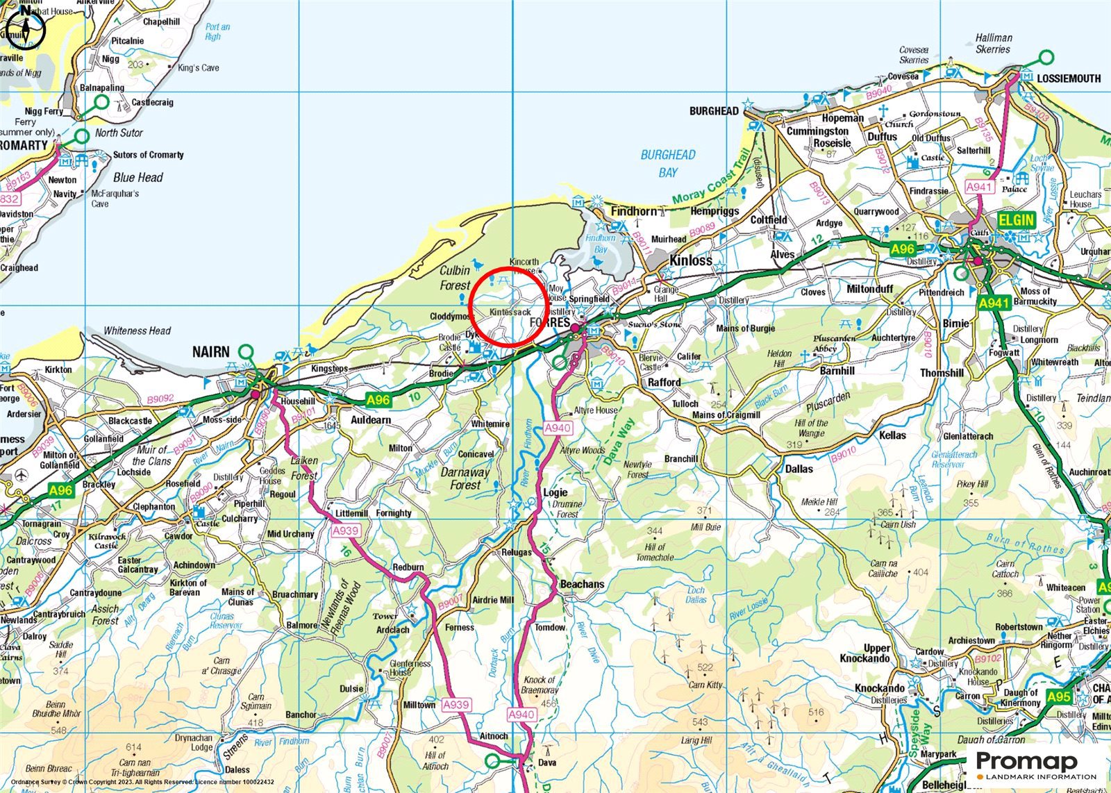 Full planning permission (ref: 18/00833/APP) has been obtained for the creation of three, detached, four bedroom houses, each with a detached double garage, to be located at the eastern edge of the desirable village of Kintessack. The submitted plans are for a 1.5 storey dwelling on each plot with the accommodation including a vestibule, kitchen/dining/living room, sitting room, utility room, 4 bedrooms (3 with en-suite shower rooms), shower room and bathroom. Services are on site and the council have been notified of the initiation of development. For further detail relating to planning, visit the Moray Council Planning Department website at https://publicaccess.moray.gov.uk/eplanning/ SERVICESWater and electricity are available on site. The purchasers must satisfy themselves as to the availability and quality of all services. Foul drainage will be to a private facility which will need to satisfy all necessary statutory requirements.