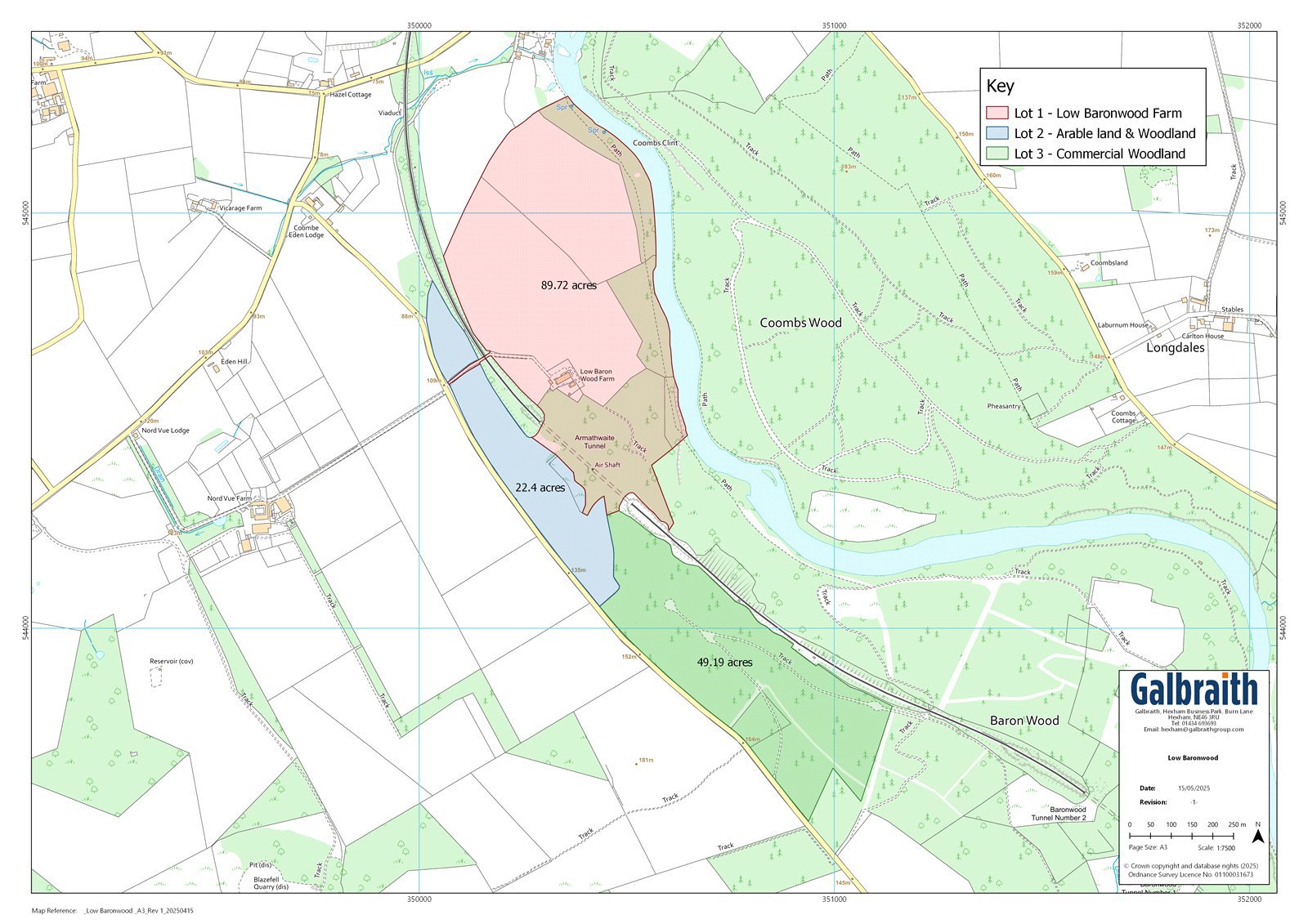 The PropertyFor sale as a whole or in any combination of 3 individual lots.The PropertyLow Baronwood Farm is set in a beautiful location in the heart of the iconic Eden Valley and provides all the charm of rural life whilst being only a short distance from the excellent range of local amenities within the village of Armathwaite, 4 miles from Lazonby and 11 miles from the busy market town of Penrith. Nearby transport connections include the M6 and A6, and trains from Carlisle and Penrith direct to London Euston.The houses are situated at the end of a long sweeping drive over the original railway bridge and ending in an extensive gravelled parking area. The property is surrounded by rolling fields and open countryside with magnificent unspoiled views and benefits from a high degree of privacy. There are no public rights of way across the property. The main house occupies a commanding position leading down to the banks of the River Eden. It was converted from a range of traditional buildings in 2007 by the current sellers. It is an uncommonly well-presented house with a flexible flow of accommodation which works well as a cosy and comfortable family home with a luxurious principal bedroom suite with more striking reception rooms making it equally well equipped for entertaining. There are various well organised and invaluable outbuildings which have historically been used for the storage of farming equipment.The Old Farmhouse is across the courtyard. It is a detached red brick building with three bedrooms and two reception rooms. It needs repair and modernisation and could work well for those who would like an additional income stream. It is restricted in planning terms to holiday accommodation.Lot 1 of Low Baronwood Farm forms the main part of a productive residential farm extending to about 89.72acres (36.30 Ha) and includes a good mix of arable, pasture and woodland parcels along the riverbank. The main access is by the private drive from the public highway although a right of access to Lot 1 for agricultural machinery will be reserved across Lot 2.Lot 2 is a parcel of about 22.4 acres (9.06 Ha) of good grade 3 arable land ideal for arable cropping. There is easy access from the public highway. Water is by a natural supply.Lot 3 is an appealing block of about 52.97 acres (21.43 Ha) of productive woodland. The woodlands at Baronwood are located on the bank of the River Eden which forms part of the River Eden Special Area of Conservation and also forms part of the River Eden and Tributaries SSSI. There is also another small area of SSSI (Eden Gorge) to the southeast of the woods. The trees are growing in gently to moderately steep ground with some areas of very steep ground. Most of the land has been worked by forestry machinery. The aspect is northerly. Soils are generally fertile and support a range of productive conifer as well as mixed broadleaf crops. The soft wood elements have been regularly thinned and there remains a good amount of timber to be harvested in the next five to ten years. The main section of commercial trees has a well-formed forest road with direct access from the public road and has been regularly used for timber extraction. There are currently no forest felling licences in place and no outstanding grant scheme obligations. The broadleaf elements are principally amenity although good quantities of biomass will be available in the future.The neighbouring estate has a right of access, though the sellers are not aware of this being exercised. The boundaries against the railway are maintained by the railway. The boundary with the neighbouring woodland owner to the south-east is not fenced. Where the woodland meets with the public highway, the drystone wall has been maintained by the seller.DirectionsFrom Carlisle, head south on the A6 and turn left for Armathwaite at the south end of High Hesket village. Take a right turn after about two miles and the drive to Low Baronwood is on the left.Postcode: CA4 9TWWhat 3 Wordsfend.knocking.mastsMileagesArmathwaite 1 mile | Carlisle 12.5 miles (London Euston 3hrs 22min) | Penrith 11.3 miles | Keswick 28.5 milesGeneralServices: Low Baronwood Mains electricity, Septic tank drainage, Private water supply, oil fired central heating. EPC: Rated C | Council Tax: Band GOld Farmhouse Septic tank drainage, Private water supply and mains electric. EPC: Rated G | Council Tax: Band ELocal Authority: Eden District CouncilTenure: FreeholdViewingStrictly by appointment with Galbraith Hexham Tel: 01434 693693Email: hexham@galbraithgroup.comANTI MONEY LAUNDERING (AML) REGULATIONS Please note that under the 2017 AML regulations we are legally required to carry out money laundering checks against purchasers. To enable us to complete these checks purchasers will need to provide along with their offer either: a) originals of primary (e.g., a passport) and secondary (e.g., current council tax or Utility bill) or b) copies of the same certified and dated by appropriate professional. Failure to provide this information may result in an offer not being considered.IMPORTANT NOTES1. These particulars are intended to give a fair and overall description of the property. If any points are relevant to your interest, please ask for further information prior to viewing. Prospective purchasers are advised to seek their own professional advice. 2 Areas, measurements and distances are given as a guide. Photographs depictonly certain parts of the property. Nothing within the particulars shall be deemed to be a statement as to the structural condition, nor the working order of services and appliances. 3 The Seller will not be obliged to accept the highest, or indeed any offer and has the right to accept an offer at any time or withdraw the property from the market. The Seller will not be liable for any costs incurred by interested parties. 4 If there are matters of particular importance please raise this with us andwe will try to check the information for you. Particu