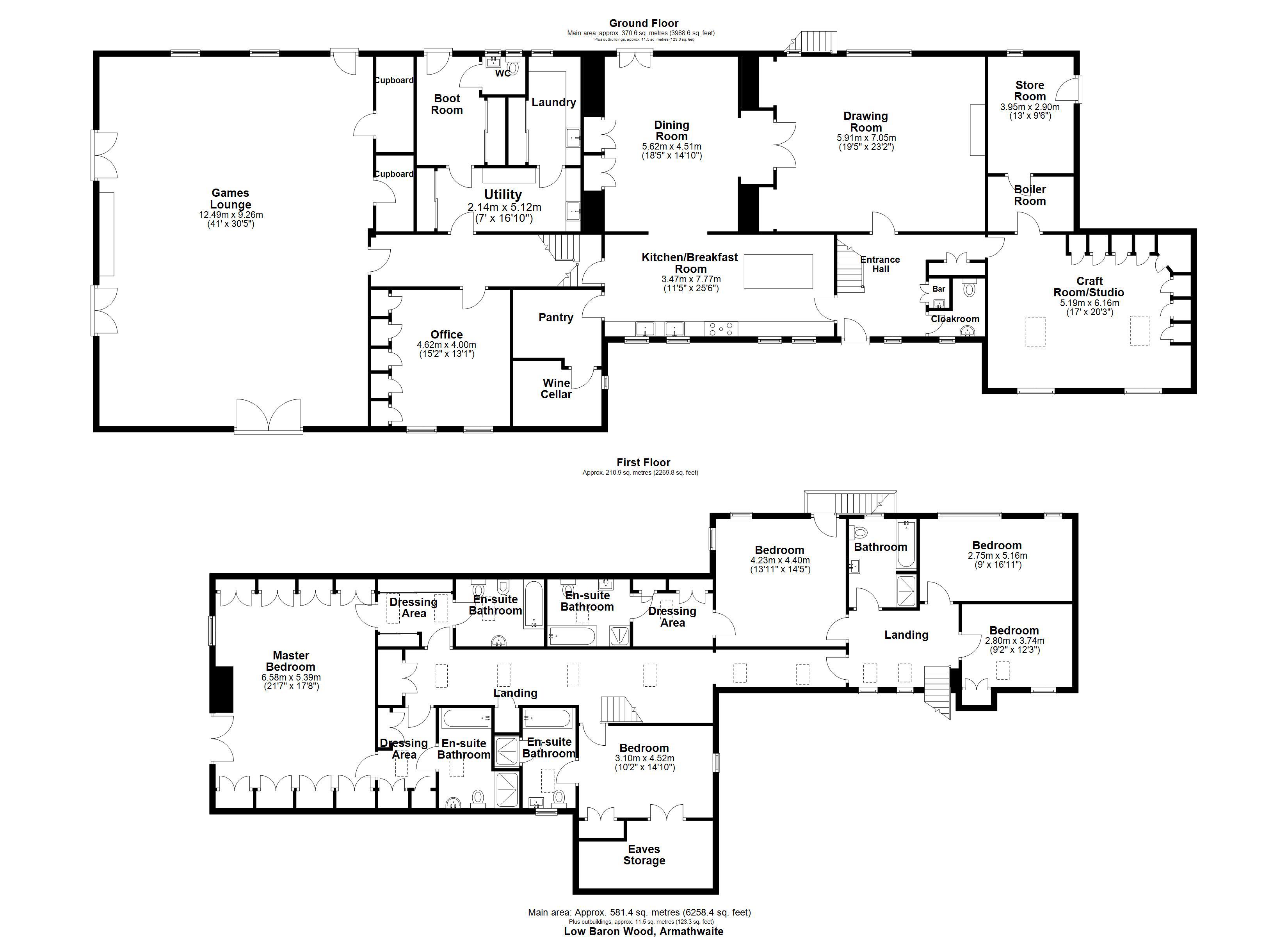 - Principal house (6,258 sq ft (581.4 sq m) with 3 reception rooms including a huge games room