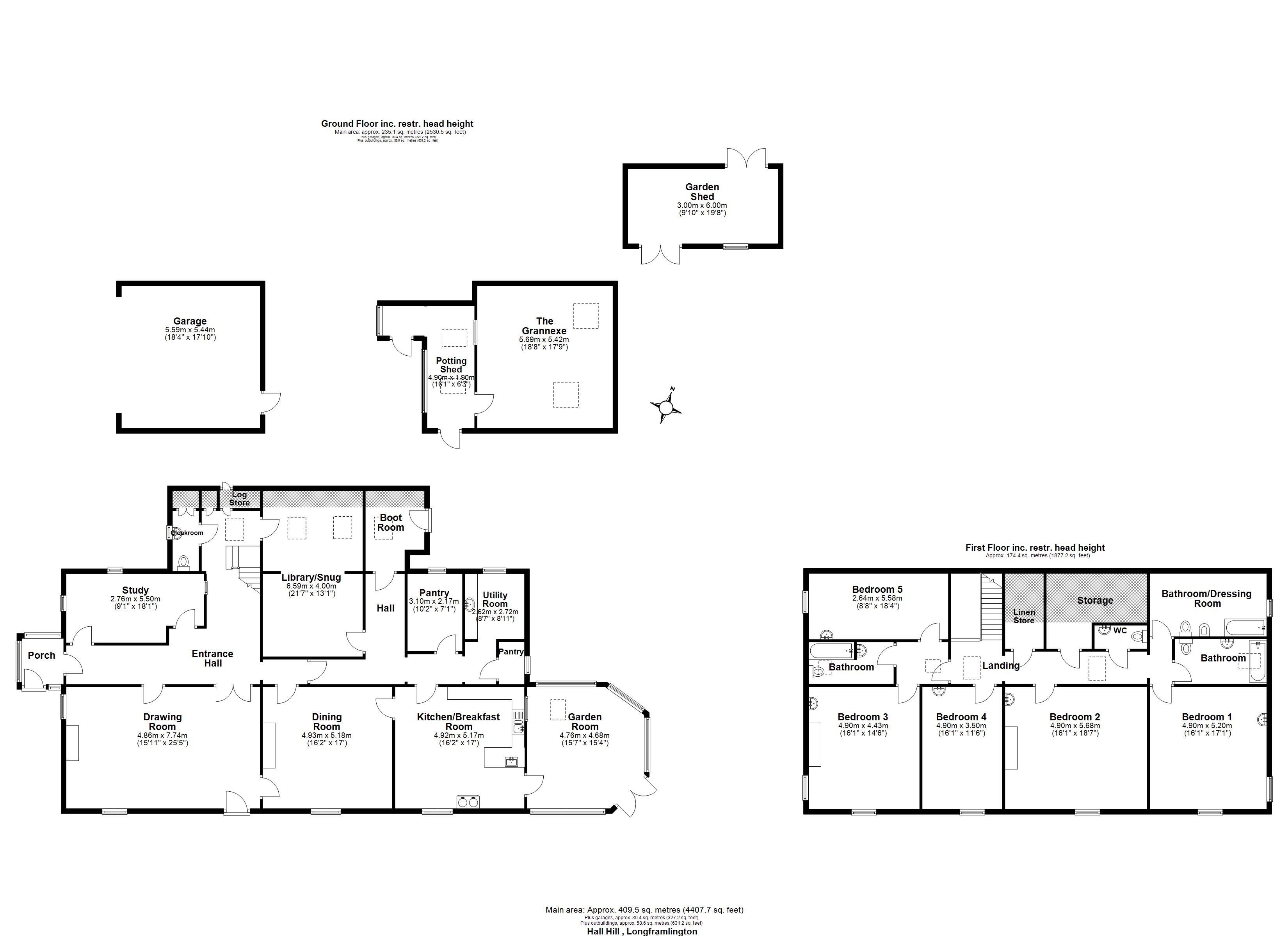 Lot 1 Hall Hill HouseMorpeth 11.5 miles | Rothbury 6 miles | Alnwick 12 miles | Newcastle upon Tyne 27 miles | Berwick upon Tweed 39 miles THE PROPERTYHall Hill House is a substantial and unique stone-built property on the edge of the village of Longframlington. The west end of the house was originally part of a bastle house, which has evolved and been remodelled through time to create free flowing ground and first floor accommodation.It has been owned by the selling family since the late 1400’s. They have occupied it for the last 25 years. During this time, it has served as a fabulous place to bring up a large family. More recently, the sellers have invested substantially in solar panels, insulation, double glazing and the installation of a biomass wood pellet heating and hot water system.Hall Hill House is positioned in an elevated south facing plot. It takes full advantage of the striking gorgeous views across the Coquet valley and extending to the sea.Almost all the ground floor space is off a welcoming reception and staircase hall. On the south front there are two wellproportioned reception rooms in addition to a delightful garden room and a study. The drawing room, with garden access and dining room both have feature fireplaces and look south over an uninterrupted view. The spacious kitchen and breakfast room also faces south and includes built in cupboards and an electric Aga range cooker. The garden room overlooks the lawn and is accessible from the kitchen. It provides access to the garden.In true country house style, there is plenty of practical space in the form of a walk-in larder, boot room, a W.C. and a log store.There are five double bedrooms and three bathrooms on the first floor. A versatile eaves storage room has the potential for a variety of uses. There is also a linen cupboard and a W.C.OUTSIDEA private driveway leads from the village playing field to an expansive gravelled parking area, giving access to the oversize double garage. A wrap-around garden offers seclusion and a peaceful environment from which to enjoy the wonderful position. The garden is mainly laid to lawn with stone walling, shrubs and hedging separating them from the open fields beyond yet still allowing glorious uninterrupted views over the countryside. A flagged terrace on the southern elevation is an ideal place to enjoy a sunny day. There is a mix of outbuildings including the Grannexe with potting shed, greenhouse and double garage. There is an established orchard and an equally well established vegetable garden with polytunnel 25’ x 10’ (7.62m x 3.04m).The property extends to approximately 1.2 acres.LOCATIONHall Hill House is located in the vibrant and popular village of Longframlington, only about 11 miles north of Morpeth. There are good local amenities including an award-winning butcher and village store, a renowned artisan bakery and tearoom, a newsagent, doctor’s surgery, two pubs and thriving community hall. The picturesque historic market towns of Morpeth and Alnwick are close at hand – they each offer a wider range of amenities including supermarkets and many specialists and high street retailers along with schooling for all ages. There is a primary school in nearby Swarland which has a ‘Good’ rating by Ofsted. The nearby countryside is home to some of the region’s outdoor leisure gems. The rich rural surroundings within Northumberland include Cragside and Brinkburn Priory, while some of the country’s finest natural beauty spots including Northumberland National Park and the dramatic Northumberland Coastline, less than 10 miles away.Lot 2: Land to the South of Hall Hill House is available for sale separately or alternatively, the house and land are available to buy as a whole. DIRECTIONSFrom Morpeth head north on the A697. In Longframlington turn left between the village shop and the bakery and take the next left down the side of the playing field. The drive entrance is on the left over a cattle grid. Post Code: NE65 8AD W3W: ///dolphin.holds.procuresMorpeth 11.5 miles | Rothbury 6 miles | Alnwick 12 miles | Newcastle upon Tyne 27 miles | Berwick upon Tweed 39 miles GENERALServices: Mains water, electricity and drainage are connected. Biomass and solar central heating and hot water, solar panels with feed in tariff, double glazing.Local Authority: Northumberland County CouncilTenure: FreeholdCouncil Tax: Band EEPC: Rated EVIEWINGStrictly by appointment with Galbraith Hexham office Tel: 01434 693693 Email: hexham@galbraithgroup.comANTI MONEY LAUNDERING (AML) REGULATIONSPlease note that under the 2017 AML regulations we are legally required to carry out money laundering checks against purchasers. To enable us to complete these checks purchasers will need to provide along with their offer either: a) originals of primary (e.g. a passport) and secondary (e.g. current council tax or Utility bill) or b) copies of the same certified and dated by appropriate professional. Failure to provide this information may result in an offer not being considered.IMPORTANT NOTES1. These particulars are intended to give a fair and overall description of the property. If any points are relevant to your interest, please ask for further information prior to viewing. Prospective purchasers are advised to seek their own professional advice. 2. Areas, measurements and distances are given as a guide. Photographs depict only certain parts of the property. Nothing within the particulars shall be deemed to be a statement as to the structural condition, nor the working order of services and appliances. 3. The Seller will not be obliged to accept the highest, or indeed any offer and has the right to accept an offer at any time or withdraw the property from the market. The Seller will not be liable for any costs incurred by interested parties. 4. If there are matters of particular importance please raise this with us and we will try to check the information for you. 5. Particulars prepared June 2025. 6.
