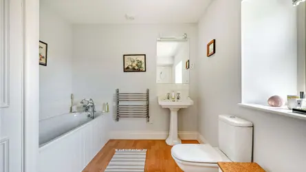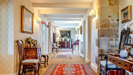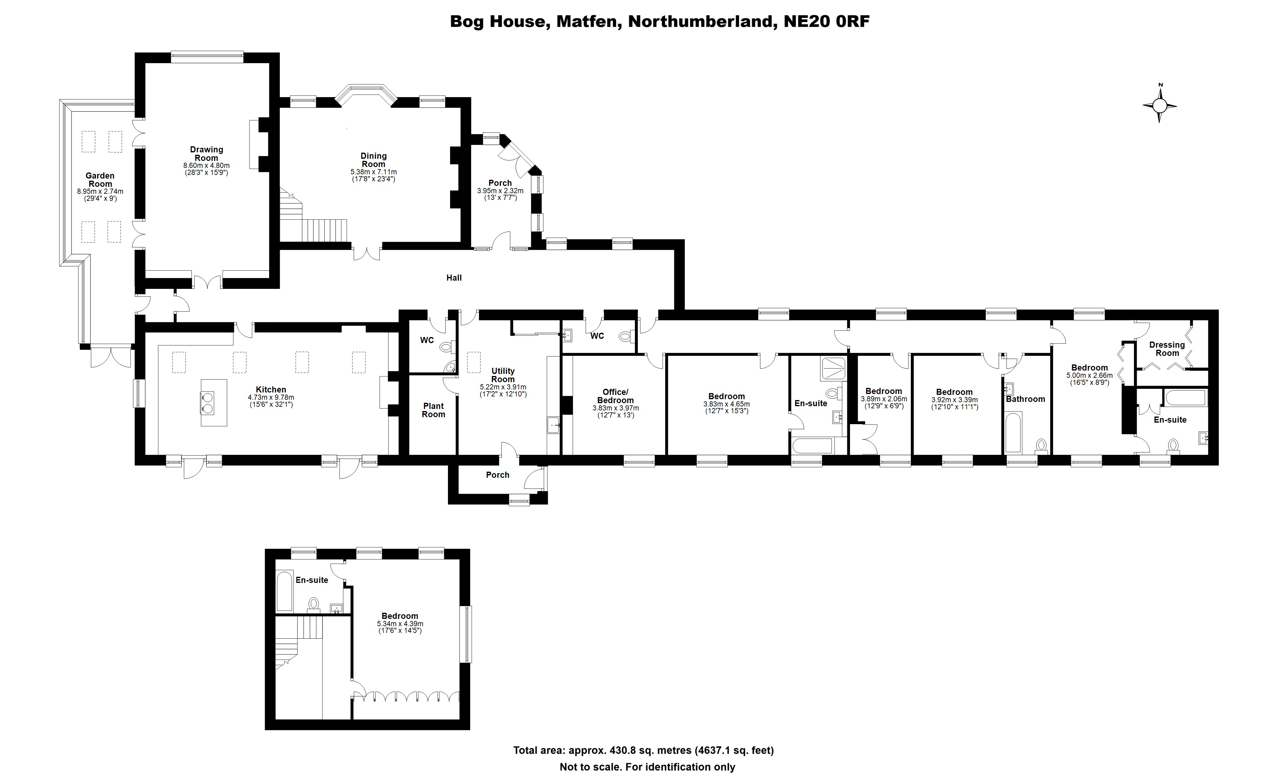The Property Bog House is constructed with mellow sandstone and is a most idyllic place to live in privacy and seclusion yet within extremely easy striking distance of the major financial and communication centres of the Northeast. This exceptional property embodies timeless elegance and modern comfort, blending traditional charm with present day luxury. Much of the living accommodation is arranged on the ground floor. There is an extensive tarmac parking area. This property might be well suited to a wheelchair user. The decor is to a London quality finish and this is a property with strong environmental credentials.A grand reception hall subtly separates the main living areas away from the bedroom accommodation. The drawing room located in the oldest part of the house, has far reaching views with elegant tall windows overlooking the garden and the countryside beyond. There are a set of double doors that lead into the garden room. A vaulted ceiling with exposed beams and a solid fuel stove set with an ornate fireplace combine to make this a very comfortable room. The garden room is at the western end of the house. It has a stunning outlook, making it a truly wonderful space in which to enjoy the evening sun.The luxurious and sociable kitchen room is opposite the drawing room. Natural light floods through the south facing full height windows and double-glazed doors open into the sheltered south facing courtyard; a sheltered sun trap throughout the year. The kitchen has an electric Aga with a central island around it, and an excellent range of floor and wall units along with integrated appliances. At the other end of the kitchen is an open fire and ample space for both dining and comfortable sitting, enabling this room to be the real heart of the home. Double doors from the reception hall open into an elegant light filled dining room lit by an expanse of sash windows that overlook the garden. The dining room is further enhanced by a handsome feature fireplace. A sweeping staircase leads from the dining room to the main bedroom suite with en-suite bathroom.The bedroom wing of Bog House is located off the main hallway. There are four further bedrooms, each with en-suite bathroom facilities and one with a dressing room. A spacious study offers the versatility for use as an additional bedroom if required. The large laundry or utility completes the accommodation, offering a range of floor units with built in sink, fridge/freezer and a wine fridge. There is access to the plant room, housing the controls and hot water cylinders for the ground-source heat pumps, which provide underfloor heating within the main rooms of the house and heating via radiators to the bedrooms. The laundry room has a door into the rear porch.OutsideA traditional timber but electrically operated gate links into the sweeping gravel driveway, which opens to a gravelled courtyard bordered by beautifully manicured lawns planted with an array of trees including cherry trees and shrubs. The garden wraps around the property, has fabulous far reaching views and combines a mix of flower beds, a kitchen garden with raised beds and stone flagged terrace. There is a sheltered south facing courtyard off the kitchen. There is a large detached triple garage with two electric roller shutter doors and includes two separate storage rooms. The paddock lies to the north of the house and benefits from a separate access onto the drive in the north east corner.LocationBog House is close to Matfen but these are country houses with their own identity. The setting is blessed with a high degree of privacy and is a notably peaceful position. The convenience of the location of Bog House and the cottages and the extensive grounds are extremely compelling attributes.Matfen is a charming village of character and historic importance and is one of the most desirable Northumbrian villages. Matfen offers a selection of local amenities, including a village shop and tearoom, a village hall, a parish church and the renowned and recently renovated five-star Matfen Hall Hotel with its golf courses, spa, swimming pool and award-winning restaurant.Corbridge (7.5 miles) also offers a variety of everyday amenities including a health centre, primary and middle schools, popular independent shops, pubs and restaurants, a garage and railway station. A wider range of amenities can be found in Hexham with its choice of shops and supermarkets, leisure facilities and schools. The surrounding countryside of the Tyne Valley has beautiful scenery and appealing, historic villages, all of which are easily accessible via a good local road network. The area is well connected by road, with the A69 providing routes towards the A1 and Newcastle Upon Tyne. For trains, Corbridge station provides services to Newcastle and Carlisle. The surrounding Northumberland countryside is ideal for walking, riding and cycling, with the magnificent North Pennines and Northumberland National Park a short drive away, while golf is available nearby at the renowned Matfen and Hexham Golf Clubs. Schooling is well catered for with first schools in Stamfordham and Belsay, and first and middle schools in Corbridge. A wide range of schooling is available in Hexham, while the popular independent Mowden Hall Preparatory School is also within especially easy reach.ViewingsStrictly by appointment through the joint selling agents:Galbraith: T: 01434 693693 | E: hexham@galbraithgroup.comAnton Estates: T: 01434 632080 | E: home@antonestates.co.ukTenure: FreeholdLocal Authority: Northumberland County CouncilCouncil Tax: Band GEPC: Band D (55)Services:Mains electricity and water are connected. Modern sewage treatment plant within the boundary. Ground source heat-pump for heating and hot water.DirectionsDrive north off the Military Road (B6318) about 0.4 miles west of the Robin Hood pub. Turn right, left and left again at the T-junctions and the gates are found on your left.What3Words: drives.flattered.camped Postcode