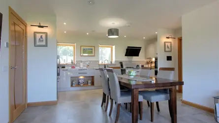 Located within a small, well-established community in Easter Coltfield, this thoughtfully designed home brings together modern architecture with a focus on energy efficiency and smart technology. Completed in 2022, the property blends clean contemporary lines with the warmth of its rural surroundings. 6 Easter Coltfield has a wonderfully bright and airy feel with large windows flooding the interior with natural light. The triple aspect sitting room with vaulted ceiling has stunning views towards Roseisle Forest and over the garden. The open plan kitchen/dining /living room, with its high quality fittings and bifold doors to the patio and garden, are particularly impressive rooms.Upstairs the landing/seating area/home office, again with fabulous views over open countryside, and the master bedroom ‘suite’, are equally impressive. 6 Easter Coltfield has been built to an exceptionally high standard utilising modern building techniques. The property benefits from triple glazing that minimises heat loss, a ground source heat pump, solar panels and high levels of insulation. An automatic Tesla Gateway isolation allows the house to continue functioning during grid power cuts and blackouts. Overall, 6 Easter Coltfield is perfect for a growing family or prospective purchasers seeking rural luxury with eco-conscious values. Please note the builders EPC A:99 GARDENOutside, the house sits within grounds which are no less impressive than the house and extend to about a third of an acre. Bordered by hedging the garden is beautifully maintained, mostly laid to lawn, interspersed with fruit trees and a number of raised vegetable beds with their own irrigation system. A sheltered area, accessed from the dining kitchen, provides a wonderful seating area and there is a second area in the garden with provision for a summer house. A gravel driveway to the front of the house provides ample parking space in addition to the integral double garage which has electric doors to the front and back.