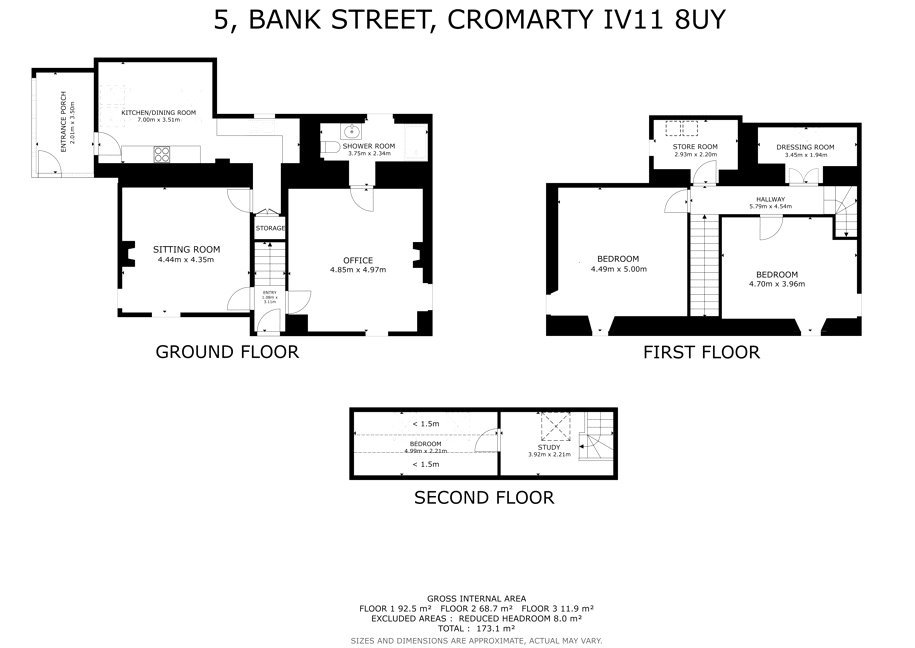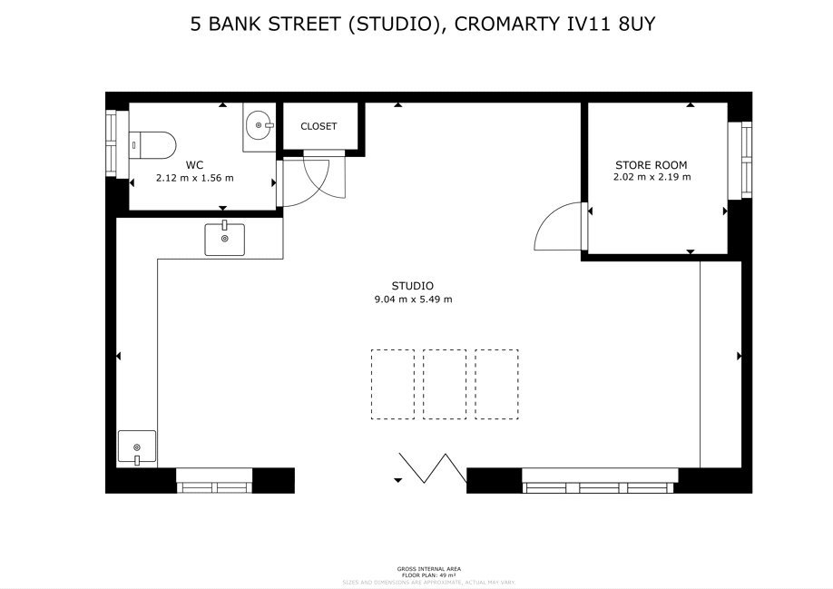 Cromarty is an 18th Century former fishing village, on the Black Ise, a peninsula which lies just to the north of Inverness between the Moray and Cromarty Firths. A charming mix of meandering lanes, fishermen’s cottage and substantial merchants’ houses with a good range of independent shops, a small supermarket with post office, and primary school, as well as a community cinema, cafes, restaurants and the harbour with its ferry to the north side of the firth. Secondary schooling is available at the highly regarded Fortrose Academy and Inverness, about 40 minutes’ drive away, has all the facilities of a modern city including its airport with regular flights to the south and Europe. The Black Isle has fertile rolling countryside with a beautiful coastline of raised beaches and prominent headlands. The area has a number of way-marked cycle trails and walks, while the coastal villages offer sheltered harbours, and nearby Fortrose has a links golf course.No 5 Bank Street is a category B-listed dwelling, which dates circa early 19th century, located in the conservation village of Cromarty. The property has been owned by glass artist Emma Nightingale since 2014 who has made many improvements throughout her ownership including full refurbishment, the replacing of the ground floor shower room, the upgrading of the kitchen, the installation of new log burners, has improved the insulation and more recently has re-harled two elevations and has had the exterior painted. Most of the windows have also been replaced within her ownership, with planning permission and listed building consent granted for the replacement of all windows. The air source heat pump has a Renewable Heat Incentive, and the PV solar panels mounted on The Studio feed the house and have a feed-in-tariff. The Studio, built in 2016/17, was designed by local Cromarty architect Lynne Sproull to be flexible in the way it could be used, including as a home office or as ancillary accommodation to the main house and has been wired for kitchen appliances and has a WC with plumbing for a shower. The Studio is a lovely, light filled space with bi-fold doors opening onto the patio. Lynne Sproull has also designed a two-storey extension to 5 Bank Street and these plans can be found on the planning pages of the Highland Council website using reference 15/02168/LBC. Emma Nightingale has added her own touch to 5 Bank Street with the two glass panels in the front door, a similar glass panel above the sitting room door, all of the be-spoke glass panels in the ground floor shower, and a glass panel behind the hob in the kitchen all being designed and handmade by her.