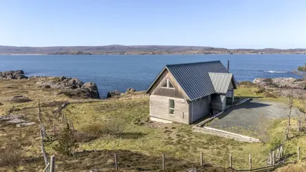 Boom House is in a beautiful setting on the northeast side of Loch Ewe in the scattered crofting village of Mellon Charles. The nearby village of Aultbea lies on the west shore of the loch and has a good range of amenities including a village shop, doctor’s surgery, garage and hotel and bar. There is a primary school at Bualnaluib, 1.5 miles from Mellon Charles, and secondary schooling is in Gairloch about 15 miles away and for which there is a free bus service. Further shops and amenities are available in Poolewe, Gairloch, Ullapool and Dingwall, with Inverness some 78 miles distant having all the facilities of a major city, including its airport with regular flights to the south and Europe.Boom House, designed by architect Robin Haddow, was completed in 2013 and has been under the same ownership since new. An energy efficient property with high levels of insulation, an air source heat pump, a mechanical ventilation with heat recovery system (MVHR), solar panels with a feed-in-tariff, and with an abundance of glazing maximising solar gain. Boom House has many contemporary design elements include larch cladding, steel roofing, a corner window and a mezzanine with glass balustrade mirroring the glass balustrade surrounding the external raised timber deck accessed by a glazed sliding door, ensuring uninterrupted views from the kitchen. The kitchen has integral appliances, a work island/breakfast bar and is open plan with the dining /sitting area with its vaulted ceiling, wood burning stove, and large windows which flood the space with costal light and take full advantage of the views over Loch Ewe and beyond. Loch Ewe has an interesting history, and the name ‘Boom House’ is a nod to the boom net which was run across the entrance of Loch Ewe in World War II to protect the naval fleet on the sea loch from German submarines.