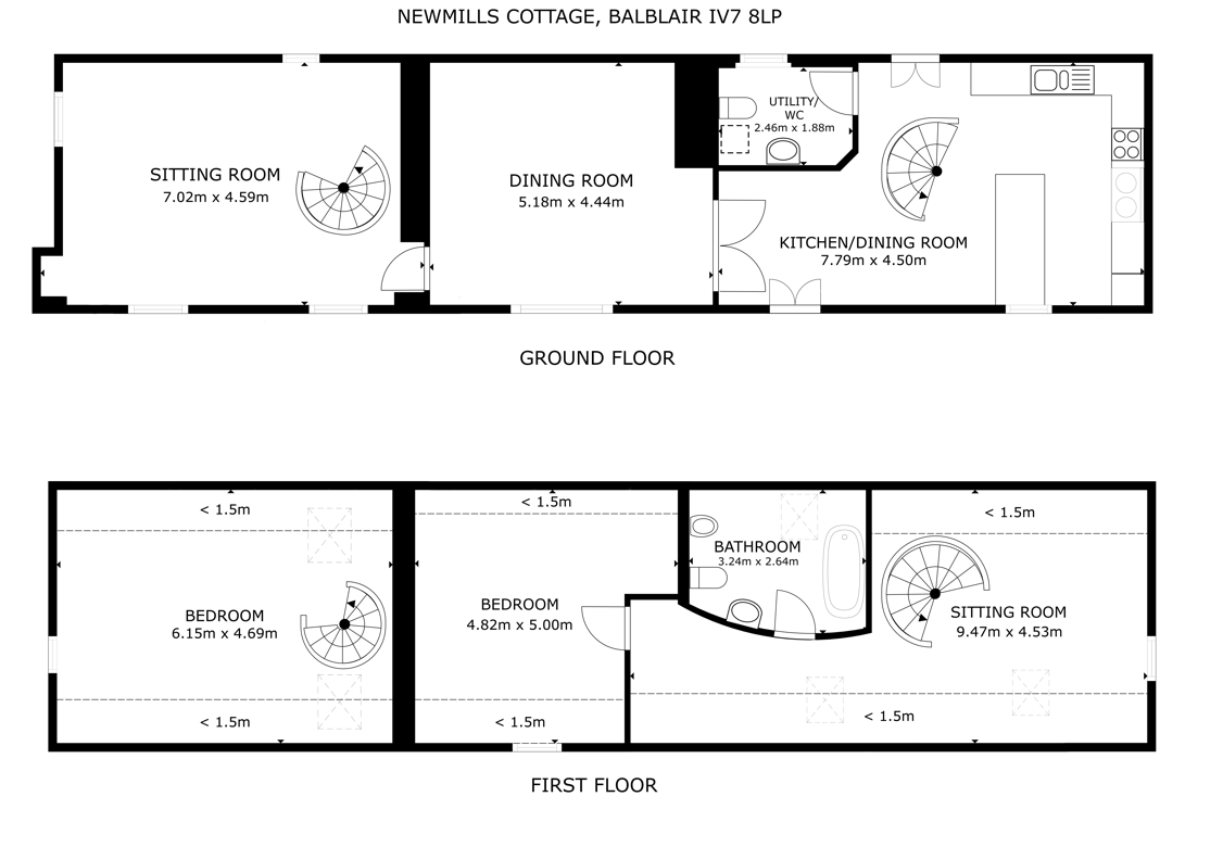 Newmills House is in the scattered hamlet of Newmills on the Black Isle. The property is ina beautiful, sheltered setting and one of a cluster of traditional houses, with a burn runningalong one boundary and stunning, far-reaching views to Ben Wyvis from the rear.The Black Isle lies between the Moray and Cromarty Firths and has fertile rolling countrysidewith a beautiful coastline of raised beaches and prominent headlands. The area has a numberof way-marked cycle trails and walks, while the coastal villages offer sheltered harbours andFortrose has a links golf course. The unspoilt countryside provides a haven for many rareand protected species of wildlife and Newmills is in an ideal setting from which to enjoy thebest the area has to offer with beautiful walks direct from the house.Cromarty is a former fishing village and is a charming mix of meandering lanes, fishermen’scottage and substantial houses. There is a good range of independent shops, a smallsupermarket with post office, and primary school, as well as cafes, restaurants, a brand newCommunity Cinema and the harbour with its ferry to the north side of the firth. Secondaryschooling is available at the highly-regarded Fortrose Academy and Inverness, about 30minutes’ drive away, has all the facilities of a modern city including its airport with regularflights to the south and Europe.The property was purchased by the current owners about 15 years ago and comprises atraditional farmhouse with an adjacent U-shaped stone and slate steading. The farmhouse hasbeen partly renovated but is now in need of further renovation, however, it is extremely attractive and offers great potential.