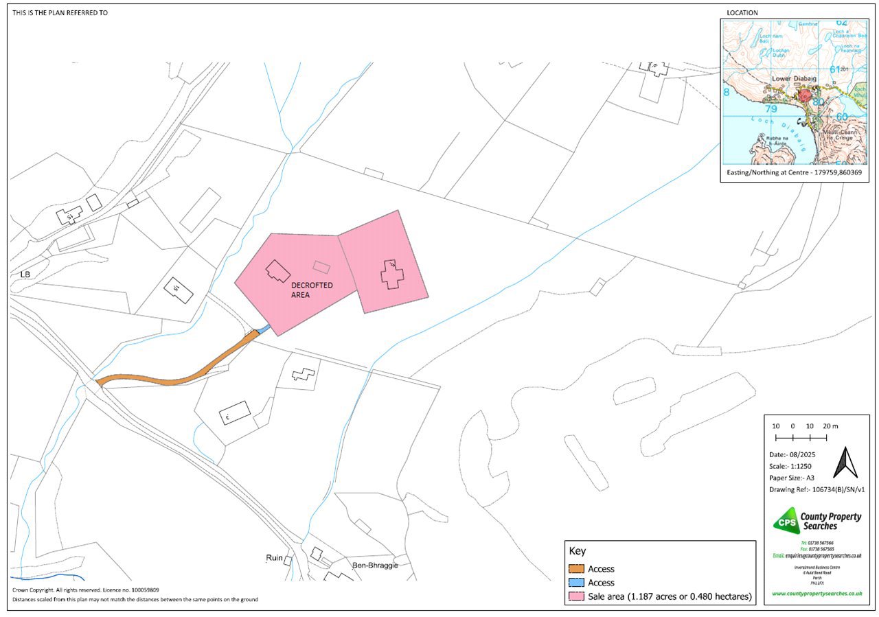 - A registered croft with rough grazing, woodland and burn.
