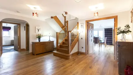 Milovaig lies on the edge of Portree on the Isle of Skye. The property is in a delightful setting, surrounded by common grazings and with beautiful, elevated views over the town to Loch Portree.The Isle of Skye is probably the best known of the Inner Hebridean islands off the west coast of Scotland. Famous for its romantic, historical associations and magnificent landscape dominated by the Cuillin mountains, the island is very popular attracting many tourists throughout the year as well as those who seek to enjoy a peaceful lifestyle in unspoilt surroundings.The area is an ideal base from which to enjoy the island with many outdoor leisure pursuits available locally including hill walking, climbing, canoeing, sailing, mountain biking, and fishing. The unspoilt countryside provides a habitat for native wildlife with regular sightings of red deer, seals, otters and birds of prey, including buzzards, golden eagles, and sea eagles.Portree, the main town on the island, is set on a sheltered bay on Loch Portree. The town has an excellent range of shops and facilities, including a cinema, swimming pool, a daily bus service to Glasgow and Edinburgh, and schooling up to secondary level. In addition, the town is the main hub on the island, hosting the Highland Games, half marathon and agricultural show.Milovaig, which was completed in 2015, has generous and beautifully presented family accommodation. The sellers were influential in the design of the house, and this is seen in the well-proportioned rooms, high quality finishes, solid wood features and natural light which fills the interior. The property is highly energy efficient with excellent levels of insulation, solar panels to heat the water and extensive use of glass maximising solar gain.