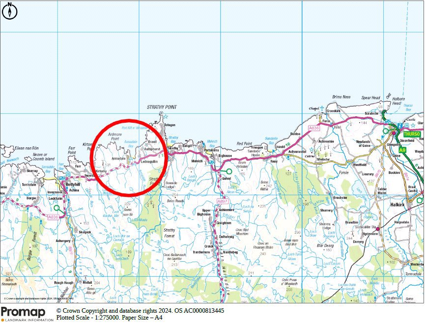 Murray House is in the crofting township of Armadale close to Bettyhill on the north-west coast of Scotland. The property is in a spectacular setting with stunning views over an open landscape to Armadale Bay. The property comprises an attractive, traditional, decrofted house with a range of outbuildings and well-managed, owner occupied IACS registered croftland, a portion of which is non-contiguous with the house.The northern Highlands of Scotland is one of the few landscapes which is still largely unaltered by human interference and on this western edge of the mainland, the wildness has shaped an environment which is at once beautiful and dramatic and offers the opportunity to enjoy nature at its best. There are beautiful walks direct from the house, most notably a walk across the croft and the coastal grassland dotted with herbs and wildflowers to the beautiful sandy beach at Armadale Bay. In the wider area, there are challenging mountain climbs, wide sandy beaches popular with surfers, and high quality salmon fishing, as well as RSPB and Nature Scotland reserves which protect our rarest native wildlife and flora only seen in this part of the UK. The village of Bettyhill is about six miles away and has an excellent village shop, filling station, cafes and primary and secondary schooling. Further secondary schooling is available in Thurso for which there is a school bus. A further range of shops and facilities can be found in Thurso and Tongue. Inverness is about 2.5 hours’ drive away and has all the facilities of a modern city along with its airport with regular flights to the south and Europe.Murray House, which was purchased by the current owners in 2018, has comfortable and recently renovated accommodation. There is solid oak flooring with insulation on the ground floor and high quality fittings in the kitchen and shower room, while the sitting room and kitchen fireplaces feature the original stone openings. There are beautiful views from the windows across the croftland to Pentland Firth, Armadale Bay and distant mountain ranges.