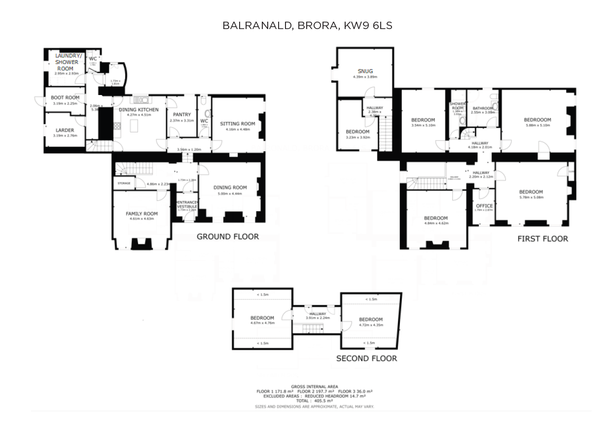 Balranald is a B Listed former Church of Scotland manse in the scattered hamlet of East Clyne close to Brora. The property is in a beautiful south-facing setting with easterly views to the Moray Firth and, to the west, Ben Bhraggie, while to the rear of the house is the charming though now derelict, listed church along with the graveyard and belfry. Balranald comprises the main house, a partly renovated steading, and a range of good quality outbuildings set in approximately 15.3 acres of gardens, grazing land and amenity woodland.Brora is in an area of the Highlands popular for its beautiful beaches, links golf courses, stunning landscape and dry climate. This unspoilt region offers many pursuits for the outdoor enthusiast including walking and hill climbing as well as world class golfing, fishing and stalking. Brora has a supermarket, general shops, restaurants, hotel and links golf course, while nearby Golspie has schooling up to secondary level and a railway station. Dornoch, with its championship golf course, and Tain are both within easy reach and offer further shops and amenities. Inverness, about a one hour drive away, has all the facilities of a modern city including its airport with regular flights to the south and Europe.THE HOUSEThere are records of an Early Christian chapel at Balranald, but the former manse itself dates from the 18th century and was enlarged in the mid-19th century. A property of some presence, the house has well laid out accommodation retaining many traditional features including original woodwork, parquet flooring, flagstone floors, a stained glass window and cornicing.The current owners purchased the property in 2010 when it had been uninhabited for some years and at this stage carried out improvements including timber treatments, upgrading the sash windows, rewiring, upgrading the plumbing, the installation of pv and solar panels, while the exterior has been re-harled. Although now in need of further modernisation, the house is extremely attractive with its handsome exterior, well-proportioned rooms and original features.GARDEN GROUNDSBalranald is approached from the public road, a gateway leading to a drive and a parking area at the side of the house.The garden grounds extend to approximately 2.4 acres. The beautiful, listed walled garden lies on the west side of the house, its wall and south-facing aspect creating a sheltered growing environment for the deep herbaceous borders, wall-trained fruit, and kitchen garden. There is a sheltered, flagstone sitting area adjacent to the house and raised terrace on the back wall with its bee boles, recesses formerly used to house traditional straw beehives.There are colourful mixed beds at the front of the house, beyond which are grass paddocks, while there are magnificent, mature broadleaf trees throughout the grounds.THE STEADINGThe L-shaped, stone and slate steading lies to the west of the walled garden and has its own access from the public road. Full planning consent for conversion to a residential dwelling was granted on 19th February 2018. Reference No: 17/05764/LBhttps://wam.highland.gov.uk/wam/applicationDetails.do?keyVal=P0WSRSIHMU900&activeTab=summaryThe steading has been structurally renovated and the interior partitioned and prepared for fitting out as a contemporary, two bedroom dwelling.There is a yard in front of the steading and a sitting area to the rear with a paddock beyond this.OUTBUILDINGSTHE BOTHYPreviously used as a short term holiday let and with the potential for use as an office, bunkhouse or residential unit, subject to the necessary consents. The building comprises:Garage5.7 m x 3 mWith double doors, lined walls and housing the converters for the pv panels.Kitchen3 m x 2.5 mWith fitted units and cooker.Washroom3 m x 3 m overallWith shower cubicle and WC.Attic RoomWith an external, spiral staircase and running the full length of the building. With power and light.MACHINERY SHED/WORKSHOP6.5 m max x 6 m maxWith power and light.LIVESTOCK SHELTER7 m x 2.9 mOf timber construction and with two double doors.GENERAL STORE4.9 m X 2.5 mLying to the rear of the house. With power and light.THE LANDThe IACS registered land extends to approximately 12.8 acres and lies across the public road from the house and grounds. Divided into seven enclosures the land comprises well-managed, permanent pasture over three grazing units, enclosed by stone walls and good quality fencing and with modern gates. The remaining land is semi-mature woodland, parcels of which are grazed, and providing shelter, amenity and a habitat for native wildlife.Permanent pasture 6.5 acresWoodland 6.25 acresWithin the farmland is a field shelter and:OPEN-FRONTED LIVESTOCK SHELTER4.7 m x 3 mSTEEL PORTAL LIVESTOCK SHED9.7 m x 5.7 mWith power, light and water.