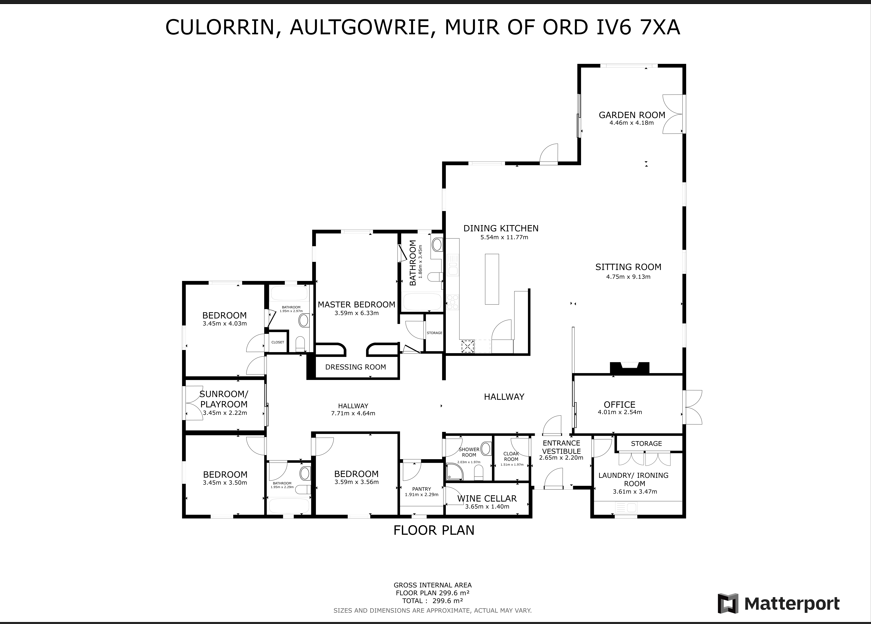 Culorrin is in the hamlet of Aultgowrie close to Muir of Ord in Easter Ross. The property is in a beautiful, secluded setting, at the confluence of the River Orrin and Aultgowrie Burn and with stunning views over its own grounds.The surrounding landscape is varied, from a network of single track roads passing through rich farmland set against a backdrop of majestic Ben Wyvis, to lush tree-lined river banks, grazing land and forests. The unspoilt countryside offers many opportunities for rural sport and recreation, as well as a habitat for native wildlife, while the west coast, famous for its spectacular coastline and sandy beaches, is under an hour’s drive away. A bridge and small drawbridge across the Aultgowrie Burn form part of a circular riverside walk within the grounds, while there are waymarked walks directly from the house including the beautiful River Orrin Falls walk and nearby is the magnificent, recently restored, Landmark Trust Fairburn Tower.Muir of Ord, just four miles away, has a good range of facilities including a small supermarket, doctor’s surgery and train station. The local primary school is in Marybank, a five minute drive from the house, and secondary schooling, as well as further amenities, are available in Dingwall. Inverness has all the facilities of a modern city including its airport with regular flights to the south and Europe.The current owners purchased the bare land at Culorrin over twenty years ago with the aim of designing a house which included traditional rural building features and construction materials, while incorporating contemporary elements. The result is an outstanding property where the Norwegian inspired clean lines of the exterior, clever use of symmetry, and deep foundations, along with a dry stone and timber finish create a house that is both striking and sits comfortably in its setting. The single storey accommodation has beautifully proportioned rooms including the impressive open plan sitting room, dining room, garden room and kitchen, its full height ceiling and extensive use of glass filling the room with natural light. There are high quality fittings throughout along with barrel-vaulted ceilings in the living areas and bedrooms and the understated finishes create a pleasing and restful interior to complement the stunning setting.The excellence of design has been recognised in two prestigious awards given when the house was first completed:Scottish Design Awards Northern Exposure Prize 2004/5Saltire Award for Housing 2004/5