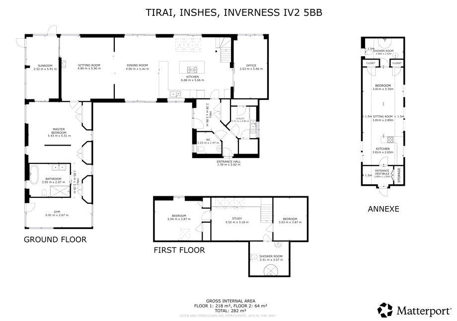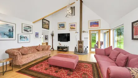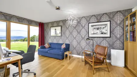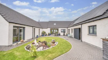 Tirai is situated in the desirable Drumossie Brae on the southern peripheral of Inverness with easy access to the A9, the city and Inverness airport. The property is in a peaceful setting with delightful views extending across the city, taking in the Beauly and Moray Firths, the Kessock Bridge, The Black Isle, Ben Wyvis and the distant mountainscape of Wester Ross. Primary schooling is close by at Cradlehall Primary and secondary schooling is at Culloden Academy. Inverness is a thriving modern city offering a wide range of amenities and excellent restaurants, shops, and sporting facilities. The mix of old and new has allowed the city to retain much of its historic dignity and strong Highland culture which blend well with modern theatre and the arts. The surrounding countryside is unspoilt and varied from the beaches and harbours to woodland and dramatic mountain ranges. There is also an abundance of native wildlife which, together, all enhance the natural beauty of the area. The city has good communications by both road and rail, and the airport offers regular flights to the south and Europe.A stunning detached house, Tirai was designed by the current owner in conjunction with their architect and completed in 2015. An exceptionally energy efficient house having a ground source heat pump, photovoltaic solar panels to produce electricity (that feed into the nation grid), solar thermal panels for hot water and with high levels of insulation throughout. Architecturally styled to resemble a traditional steading Tirai sits sympathetically in its countryside setting, the traditional exterior belies the contemporary interior, thoughtfully designed with well laid out accommodation spread over two floors. Modern interpretations include a vaulted ceiling in the main open plan living area which enhances the sense of space while large windows frame the views, allow an influx on natural light, and maximise solar gain. The ground floor principal bedroom suite features a dressing area, an en-suite bathroom with roll-top bath and an accessible walk-in shower, and a gym. A charming one-bedroom studio apartment is located above the garage with its own private entrance via an external staircase from the courtyard.