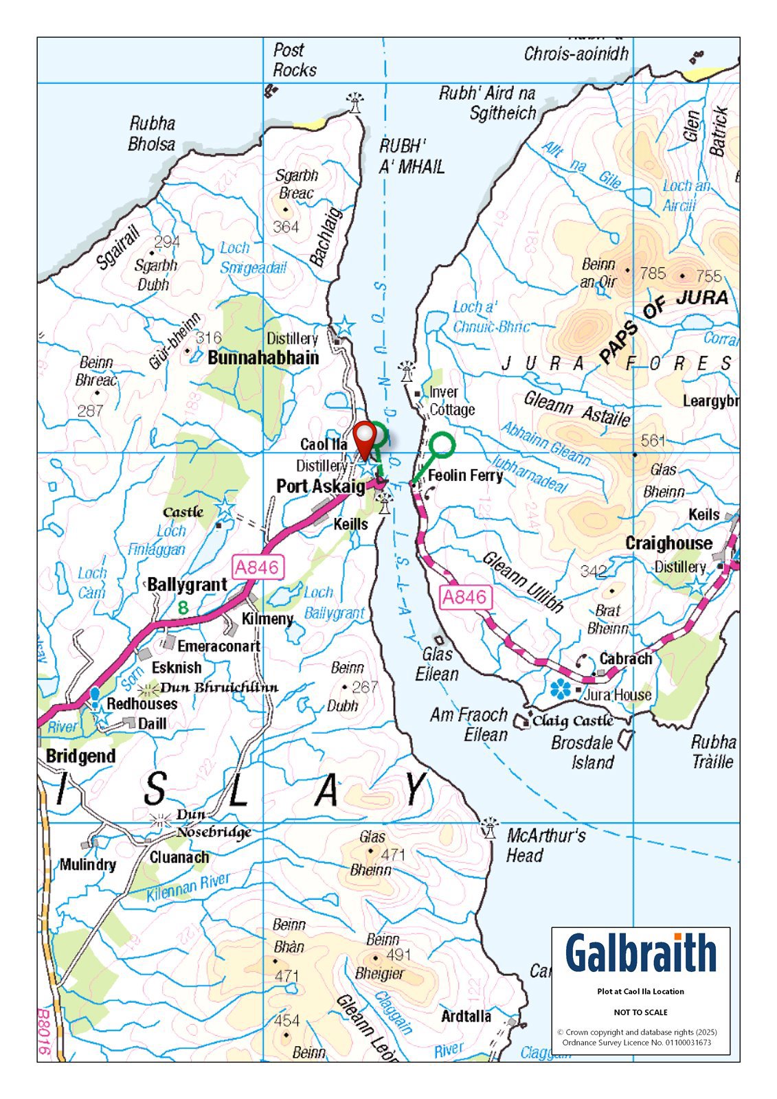 SITUATIONThe Plot at Caol Ila is situated on the Isle of Islay in Argyll and Bute just to the north of Port Askaig and just south of the Caol Ila Distillery. The Isle of Islay is the southernmost island of the Inner Southern Hebrides with a rich history and resident population of around 3,500 people. The island, most famous for its several whisky distilleries, has excellent and comprehensive facilities, including a hospital, primary and secondary school, veterinary practice and a variety of pubs, restaurants and cafes servicing local produce and a leisure centre and Bowmore.The Isle of Islay also offers excellent opportunities for outdoor enthusiasts. With 130 miles of coastline there are breath-taking beaches, an array of wildlife and plenty walking and cycling routes. With its low-lying fertile grounds and high moorland hills, there are walks for every ability. The Isle of Islay also has various nature reserves, popular scenic points historical landmarks. A championship golf course can be found at The Machrie 4 Star Hotel.The travel links to Islay include regular ferry services at Port Ellen and Port Askaig to the mainland and regular flights to Glasgow.DESCRIPTIONThe Plot At Caol Ila extends to approximately 0.56 acres (0.23 hectares) and is currently down to rough gorse and scrub ground. The plot is gently sloping giving it an elevated northeastern outlook boasting phenomenal views overlooking the coast and hill ground beyond. The Plot at Caol Ila benefits from planning in principle for a residential development, the reference number is 24/02039/PPP.