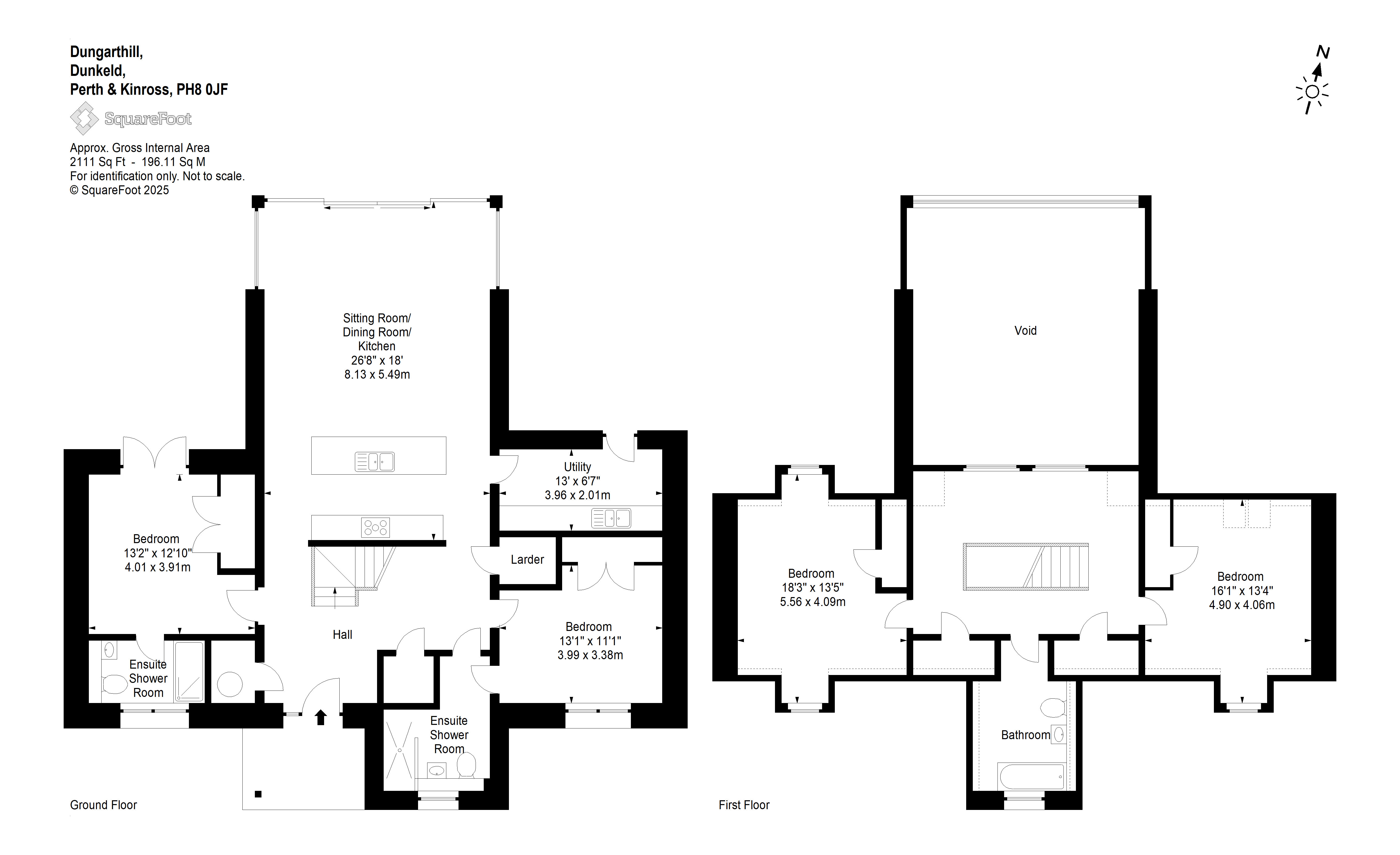 SITUATION Hill View sits in a lovely rural setting, within a small cluster of principally new build houses at Dungarthill, some 3.5 miles west of Dunkeld, a popular and highly sought after village in the County of Perthshire. Dunkeld, lying on the banks of the River Tay, with its historic Cathedral, is a vibrant village with a thriving community and superb day to day facilities including a delicatessen, bakery, butcher, small supermarket, independent retailers, restaurants, coffee shops, golf course, medical centre and primary school. Dunkeld also has a train station providing regular services north and south together with the sleeper service to London.Perth, known as the Fair City, is approximately 17.5 miles south and provides excellent facilities and services including national retailers, concert hall, theatre, swimming pool, banks, as well as a bus and train station with services to Edinburgh, Glasgow, Inverness and Aberdeen. Edinburgh can be reached in just over an hour’s car journey with its international airport and broad and vibrant city amenities.Perthshire is a county renowned for its wealth of recreational activities on its doorstop. The surrounding hills and glens offer many walking and mountain biking routes while winter sports can be enjoyed at Glenshee Ski Centre which lies about an hours car journey to the north. For the golfer there are numerous courses within a comfortable distance including Dunkeld, Perth and Blairgowrie. Dunkeld is also home to a clay pigeon shooting range, Land Rover Experience Scotland and The Dunkeld House Hotel which offers an extensive range of outdoor recreational activities such as fishing or quad biking. Here there are also a variety of walking and cycling routes along the River Tay.DESCRIPTION Hill View is a lovely contemporary house which has been recently completed to the highest standard. The entrance hall leads to a stunning open plan kitchen and living room with double height ceilings and beautiful views of the surrounding countryside. The kitchen has integrated appliances and an island with a breakfast bar creating a social space ideal for hosting guests. The living room/dining room extends beyond the kitchen and is flexible and adaptable making it ideal for family life. Off the kitchen is a utility room with a back door to the patio and a larder cupboard. He ground floor has two spacious double bedrooms, both with integrated wardrobes and ample room for furniture. One is en suite while the other is jack and jill.A lovely oak staircase leads to the first floor where there is a mezzanine with windows overlooking the living room and the views beyond. This is an ideal space for a study, children’s play area or a studio. There are two bedrooms on the first floor, with integrated wardrobes and lovely views, as well as a family bathroom. ACCOMMODATION Ground Floor: Entrance Hall, Living/Kitchen, Utility, Double Bedroom with Jack and Jill Bathroom, Double Bedroom with En Suite.First Floor: Mezzanine, 2 Double Bedrooms, Bathroom.GARDEN Hill View has lovely garden grounds which provide exceptional views of the surrounding countryside. To the front of the house is a generous driveway with ample parking for multiple cars. To the rear of the property is a lovely patio, ideal for outdoor dining and enjoying the peaceful surroundings. Beyond the patio is the lawn which wraps around the rear and side of the house and provides a super space for children to play or for the creation of a beautiful productive garden.