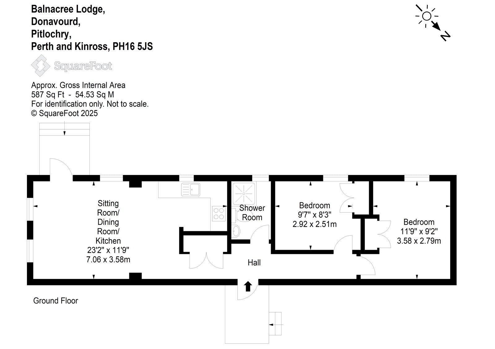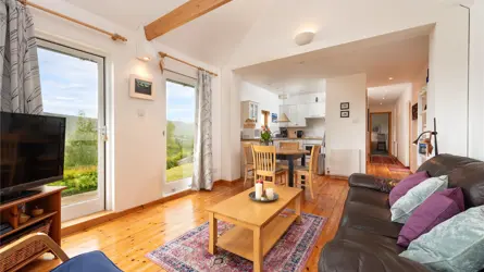 SITUATION Balnacree Lodge is situated in an elevated position with the most wonderful southerly outlook over the surrounding countryside and hills beyond. The property is located on the edge of Donavourd, a pretty hamlet approximately 2 miles south of Pitlochry, a popular and highly sought after town which benefits from great day-to-day facilities such as a supermarket, chemist, medical centre, dentist, a range of cafes and restaurants, a train station with sleeper services to London, as well and nursery, primary and secondary schooling. Pitlochry itself offers a wealth of cultural activities including the famous Festival Theatre with regular shows and performances and the iconic fish ladder.The city of Perth is under an hour’s drive south and offers a good range of local and national retailers, leisure facilities, banks, an art gallery, cinema, swimming pool and theatre. There is also a bus and train station with excellent transport links to Aberdeen, Inverness, Glasgow and Edinburgh.Perthshire is renowned for its wealth of recreational opportunities on its doorstep. The surrounding hills and glens offer many walking and mountain biking routes whilst winter sports can be enjoyed at Glenshee Ski Centre which lies under an hours journey north. For the golfer, there are numerous courses within a comfortable distance including a course in Pitlochry itself with both Dunkeld and Perth offering additional courses. DESCRIPTION Balnacree Lodge is of a steel portal frame construction clad with timber under composite tile roofing with accommodation across one floor. The entrance hall leads into the bright and airy reception space which benefits from floor to ceiling windows providing wonderful south west views overlooking the River Tummel, surrounding countryside and hills beyond. The reception space provides open plan living with kitchen, dining and sitting room facilities located together, perfect for socialising, as well as garden access to the south. The remainder of the ground floor comprises 2 double bedrooms, a shower room and a utility cupboard. Balnacree Lodge benefits from planning permission for n extension to create a further living room which could also be used as a third bedroom. More details are available on the Perth and Kinross planning Portal under the reference 24/01717/FLL.ACCOMMODATION Ground Floor: Hall, Kitchen/Dining/Sitting Room, Utility Cupboards, Shower Room, 2 Double Bedrooms. GARDEN (AND GROUNDS) Balnacree Lodge has a right of access over and is accessed via a shared access track which leads to a gravel and grass parking area. The property benefits from a wrap around south facing garden, which makes the most of the views and is primarily laid to lawn with post and wire fencing. A further area of the paddock to the front of the cottage is being included to provide extended garden grounds. Buyers will be obligated to erect a stock proof fence around the paddock area within 3 months following the date of entry.
